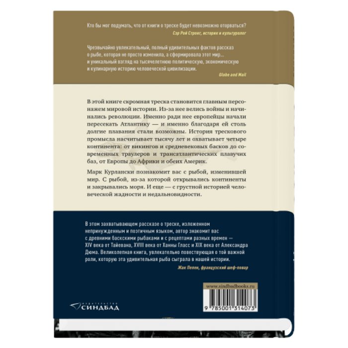 В книге Марка Курлански скромная треска становится главным персонажем мировой истории. Ради трески европейцы начали пересекать Атлантику — и именно благодаря треске столь дальние плавания стали возможны. Из-за трески велись войны и начинались революции, она служила основой рациона целых народов, от нее зависели экономики разных стран, и колонизация Северной Америки произошла во многом благодаря ей. Автор знакомит читателей с людьми, чья жизнь тесно связана с этой уникальной рыбой, — исследователями, торговцами, писателями, шеф-поварами и, конечно, рыбаками. Он рассказывает о тресковых войнах XVI и XX веков, делится рецептами разных эпох и показывает нам саму треску — ее повадки, эволюцию и, в конечном счете, трагедию. Треска столетиями кормила человека, но теперь нуждается в его помощи: запасы рыбы, казавшиеся неистощимыми, практически иссякли.