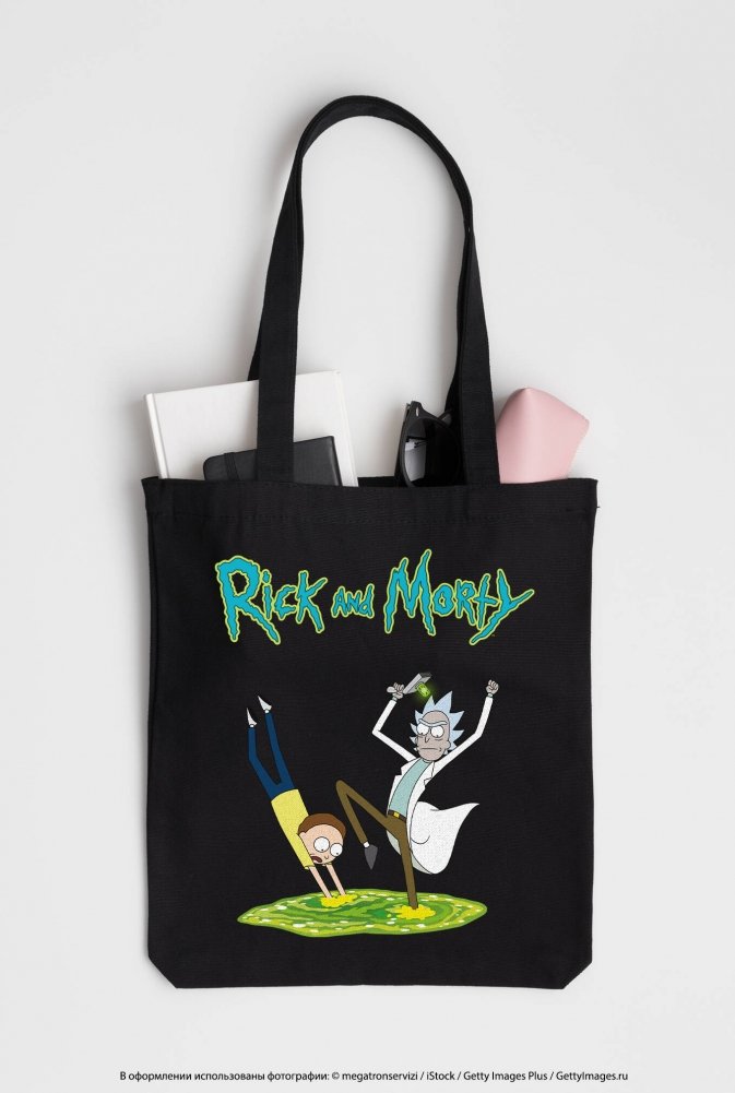 Сумка. Рик и Морти (портал) (черная, 38х43 см, длина ручек 58 см)