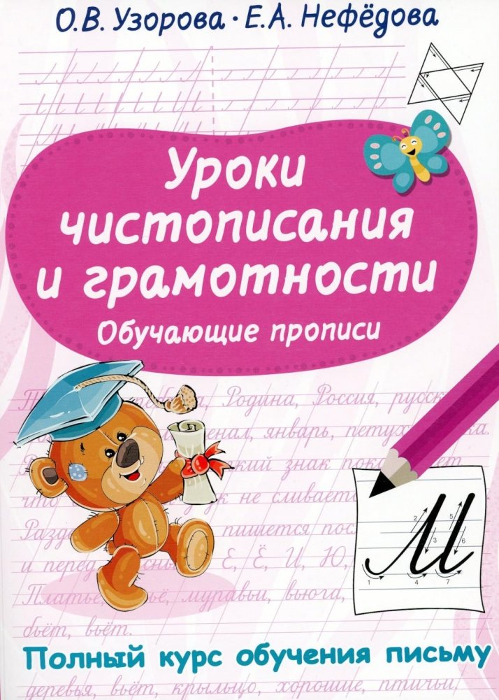 «Уроки чистописания и грамотности. Обучающие прописи» — это настоящий чудо-тренажёр для учеников начальной школы, основанный на авторской методике О. В. Узоровой. Под обложкой рабочей тетради — комплекс эффективных упражнений для формирования красивого почерка и развития грамотности. Регулярно выполняя задания по чистописанию, учащиеся доведут до автоматизма навык написания букв, освоят приёмы правильного письма, потренируют мелкую моторику.