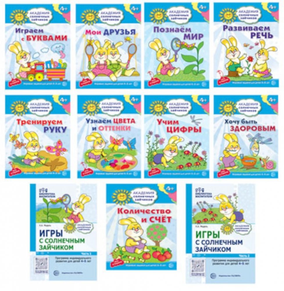 Комплект. Академия солнечных зайчиков. Система развития ребенка 4-5 лет: 2 методички и 9 тетрадей