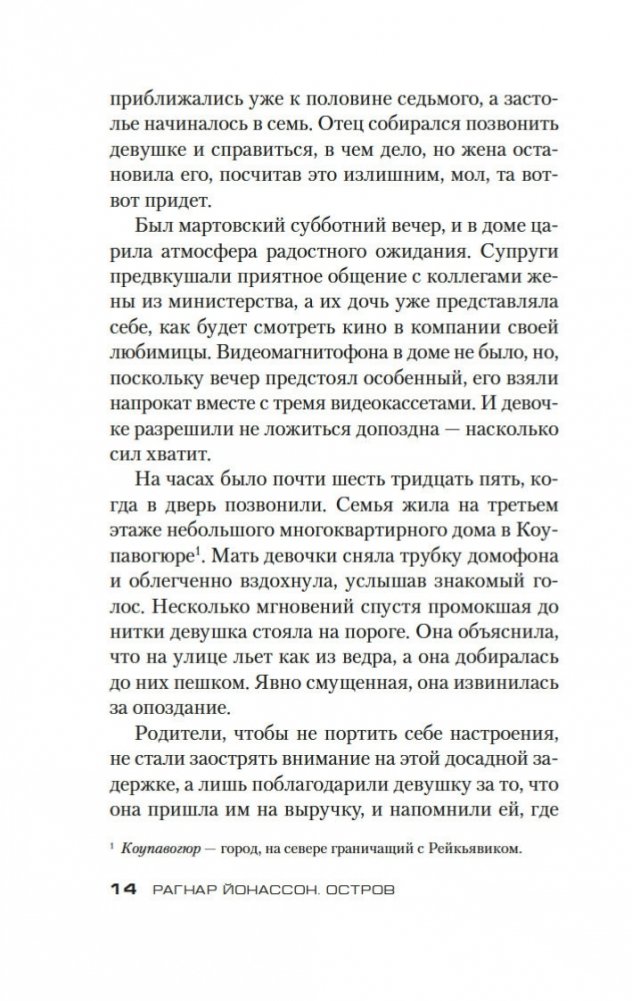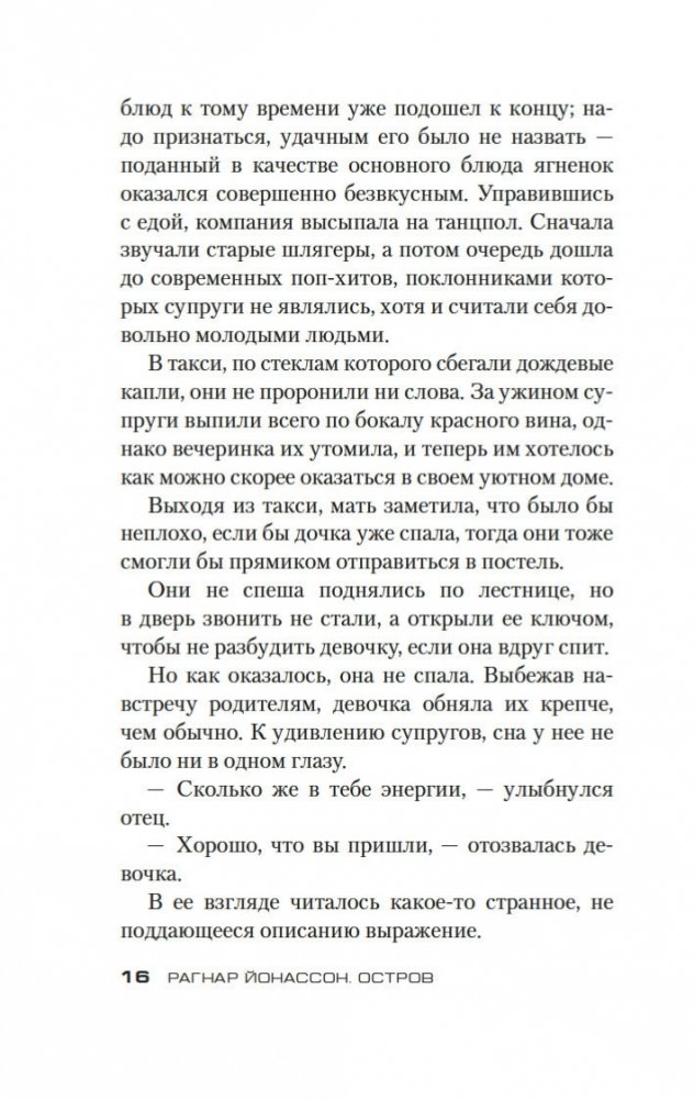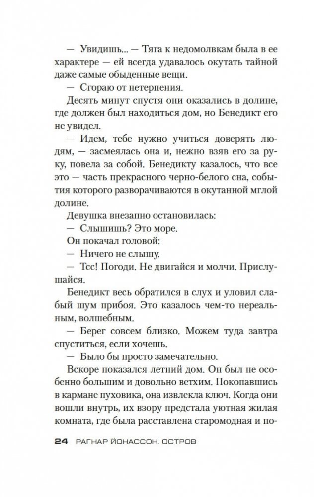 Четверо друзей отправляются отдохнуть на остров недалеко от побережья Исландии, никто из них не знает, что эта поездка обернется трагедией... Инспектор полиции Хюльда Херманнсдоуттир ведет расследование и обнаруживает странную связь истории на острове с делом десятилетней давности, когда была найдена мертвой молодая женщина, погибшая при неясных обстоятельствах в столь же пустынном месте. Хюльда блуждает по лабиринту недомолвок и все больше убеждается, что никто не говорит ей всю правду, включая самых близких людей. Захватывающий, тревожный и пугающий роман Рагнара Йонассона повествует о женщине, которая пытается найти истину, ускользающую в провалах времени, а также пролить свет на собственное прошлое. «Остров» — вторая книга в трилогии о Хюльде «короля скандинавского нуара» Рагнара Йонассона, мгновенно ставшая мировым бестселлером, в котором переплетаются настоящее и прошлое, ложь и правда, любовь и предательство.