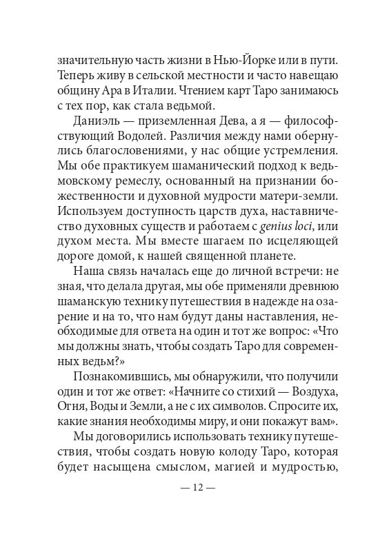 Две ведьмы, американская верховная жрица викки и английская природная ведьма, провели целый год в совместном путешествии по иным мирам. Мудрость, которую они получили за это время, привела их к созданию абсолютно новой интерпретации Таро. В отличие от традиционных карт, которые ведут вопрошающего к просветлению, оставляя Землю позади, им было показано Таро для земной жизни, влекущее в магическое путешествие вглубь мира, а не за его пределы.