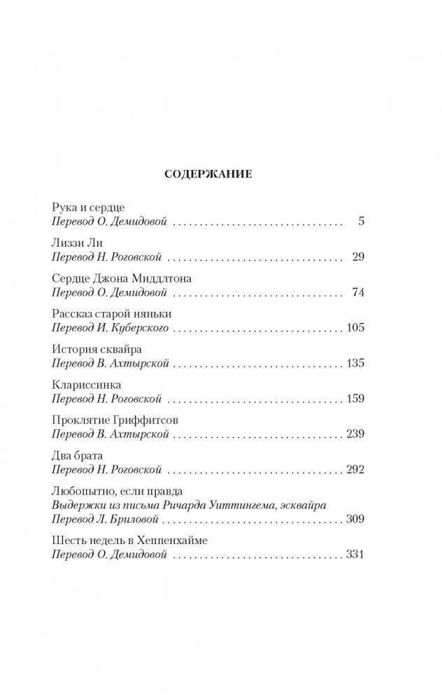 Элизабет Гаскелл (1810–1865) принадлежит к яркой плеяде прославленных английских романистов и, наряду с Шарлоттой Бронте, занимает самое почетное место среди «литературных леди» Викторианской эпохи, а ее произведения признаны шедеврами мировой классики. В их числе романы «Мэри Бартон», «Крэнфорд», «Север и Юг», «Жены и дочери» и др. В настоящем сборнике представлена «малая проза» автора, собрание рассказов, написанных в разные годы жизни, на страницах которых оживают картинки из жизни «старой доброй Англии». Это самые разные истории — поучительные, мистические, трогательные и курьезные, — в которых переплетаются сквозные темы и сюжеты творчества Элизабет Гаскелл: тайны человеческого сердца и загадочные предначертания рока, который управляет судьбой; извечное противоборство чувства и долга; способность творить добро и зло, в равной мере присущие человеку, и ответственность за свои поступки, а вместе с этим и неизбежность расплаты; сила любви и веры в Бога, дарующая спасение и противостоящая судьбе. Большая часть рассказов, включенных в сборник, публикуется на русском языке впервые.