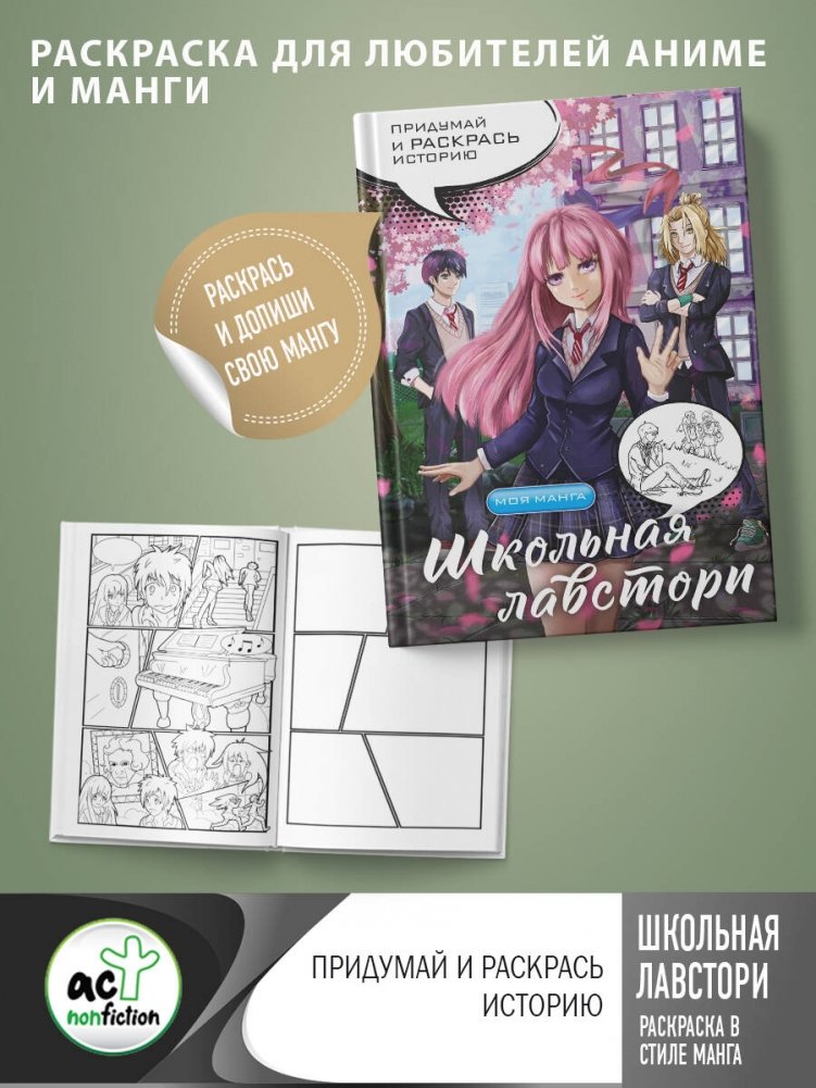 Школьная лавстори: раскраска в стиле манга. Придумай и раскрась историю