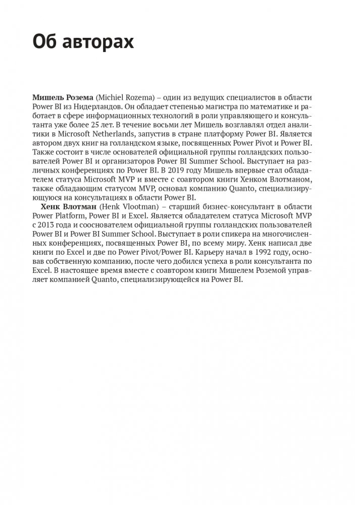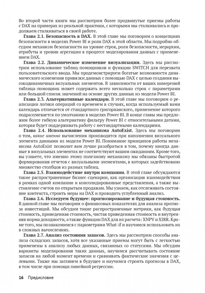 В книге излагаются основы моделирования данных с точки зрения языка DAX. Разбираются реальные бизнес-сценарии, связанные с учетом складских запасов, прогнозированием, взаимодействием между отделами в рамках компании и безопасностью данных. Прорабатываются нюансы моделирования данных и распространенные ошибки, допускаемых при построении сложных агрегаций. Издание поможет в построении мощных аналитических решений на основе данных с использованием всего потенциала доступных инструментов.