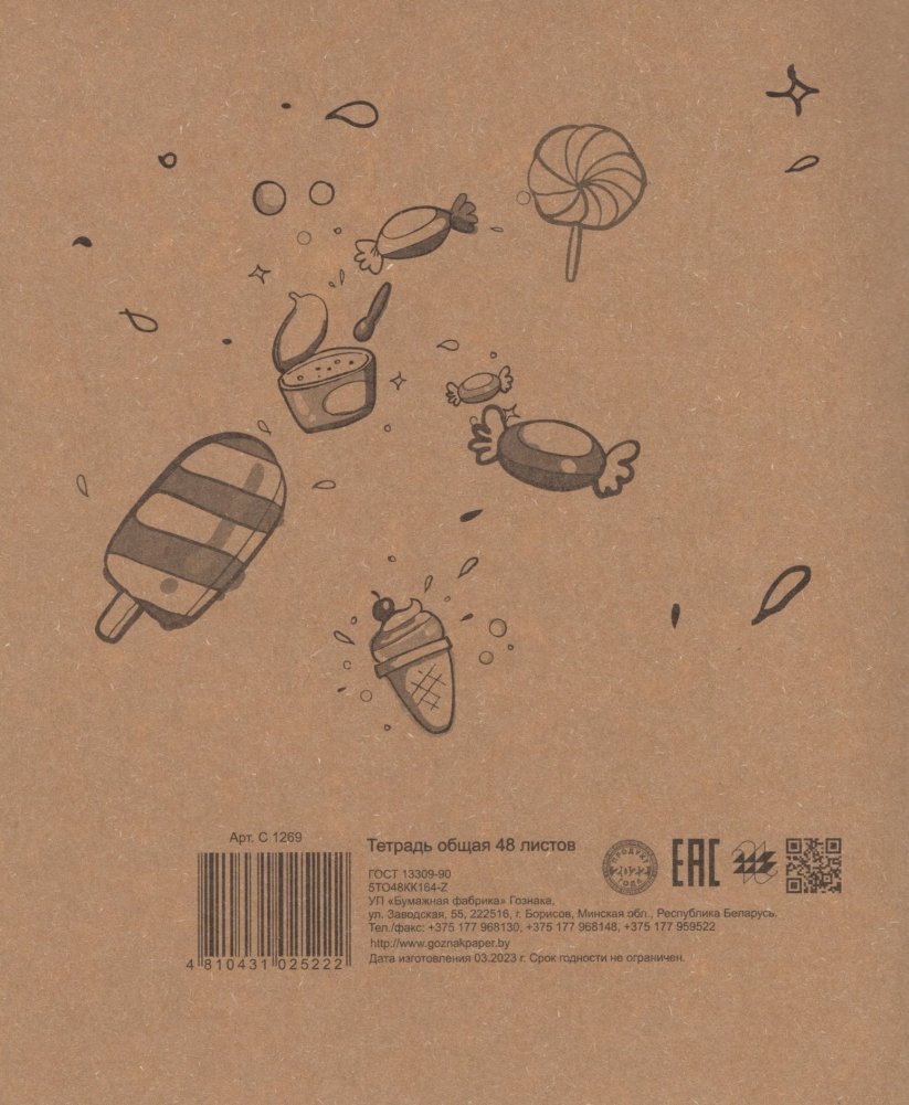 Тетрадь общая, 48 листов. Серия "Сладости". Обложка из крафт-картона
