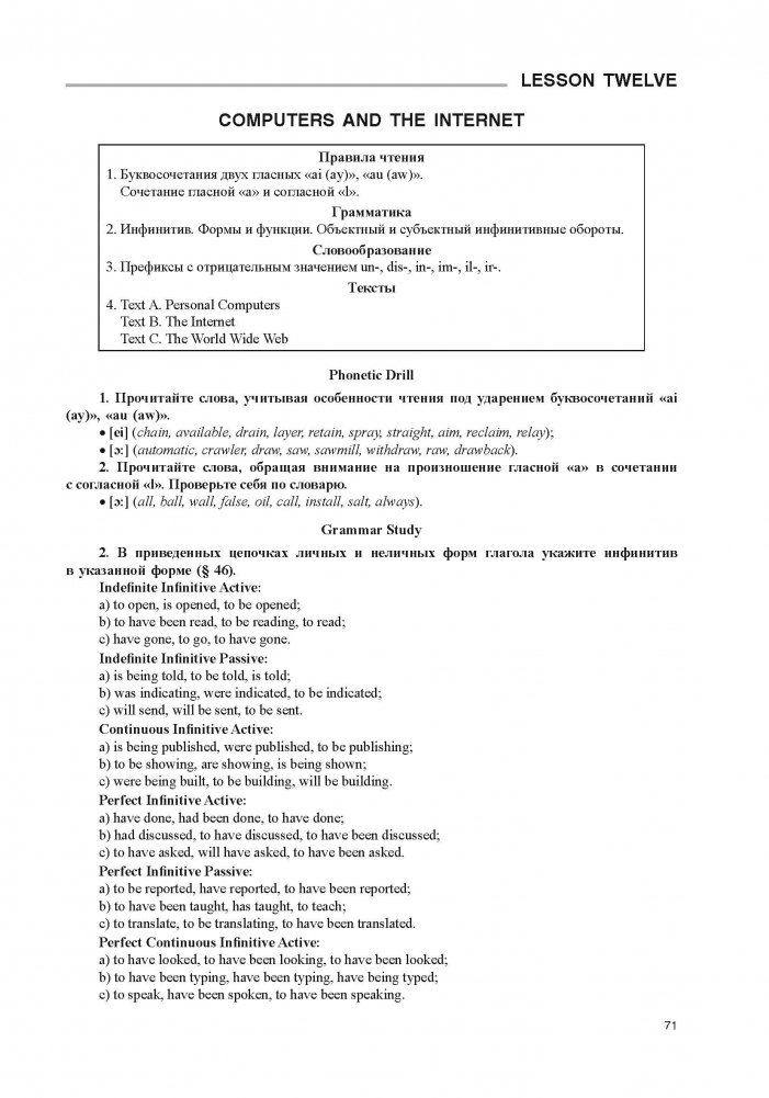 Учебник содержит 14 основных уроков (разделов), серию тренировочных и контрольных упражнений, краткий грамматический справочник, материалы для чтения и обсуждения прочитанного и приложение.