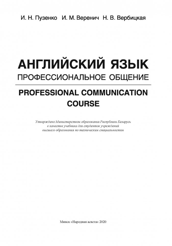 Английский язык. Профессиональное общение. Professional Сommunication Сourse