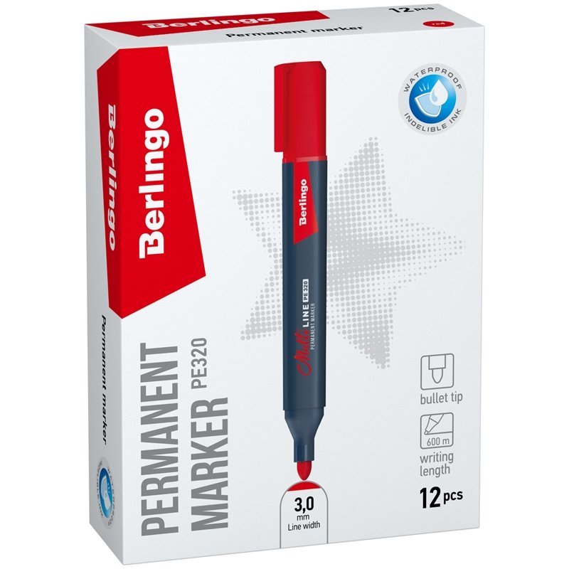 Маркер перманентный Berlingo "Multiline PE320" красный, пулевидный, трехгранный, 3 мм. Арт. BMc_17203