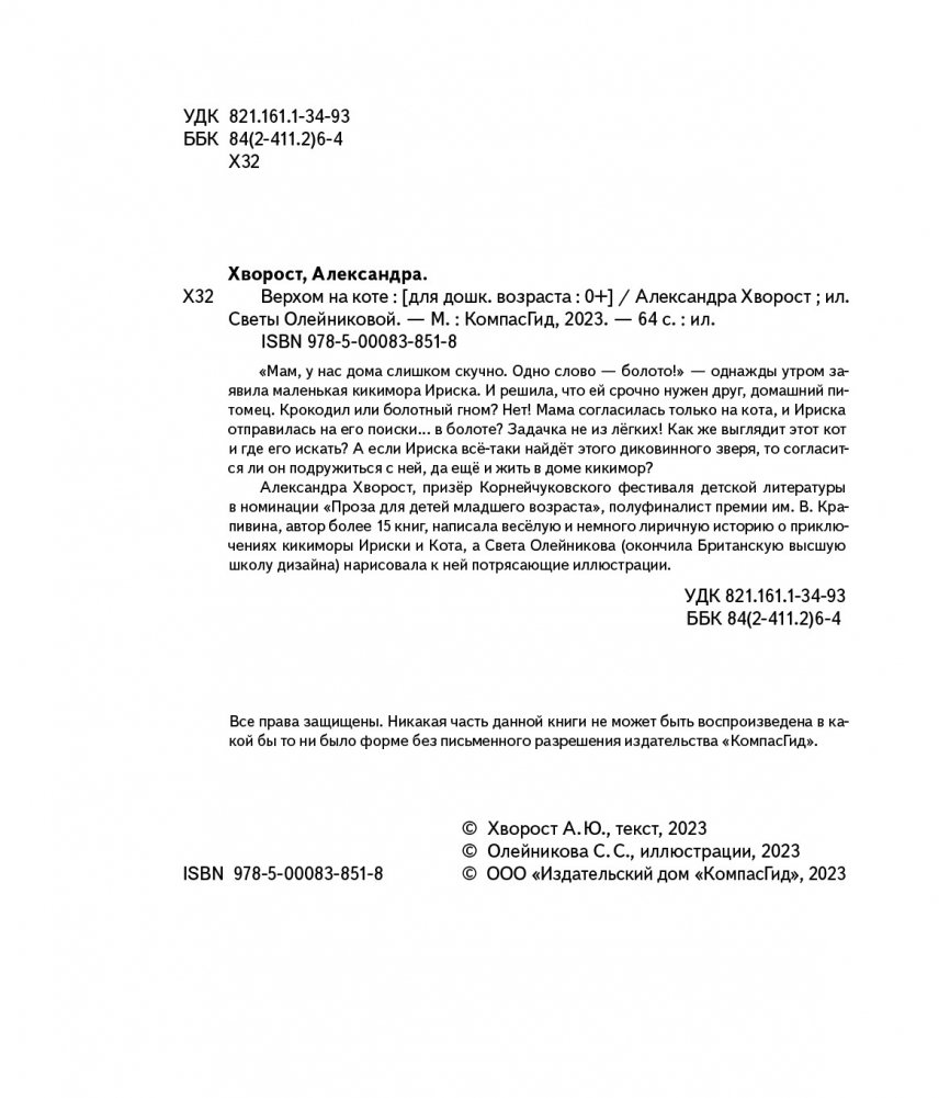 «Мам, у нас дома слишком скучно. Одно слово — болото!» — однажды утром заявила маленькая кикимора Ириска. И решила, что ей срочно нужен друг, домашний питомец. Крокодил или болотный гном? Нет! Мама согласилась только на кота, и Ириска отправилась на его поиски... в болоте? Задачка не из лёгких! Как же выглядит этот кот и где его искать? А если Ириска всё-таки найдёт этого диковинного зверя, то согласится ли он подружиться с ней, да ещё и жить в доме кикимор?