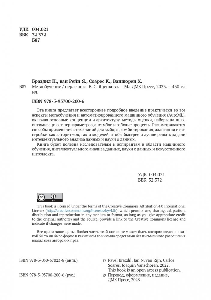 Издание адресовано исследователям в области машинного обучения, интеллектуального анализа данных и искусственного интеллекта, а также может быть полезно студентам и аспирантам.