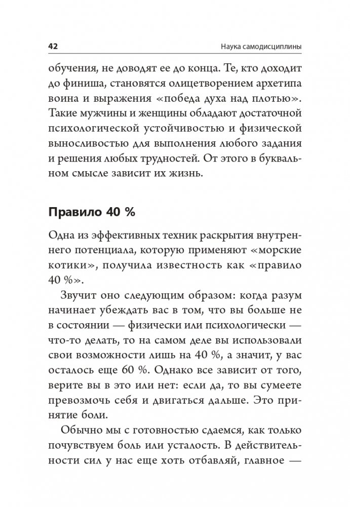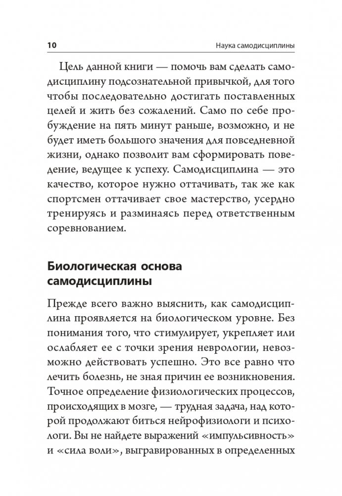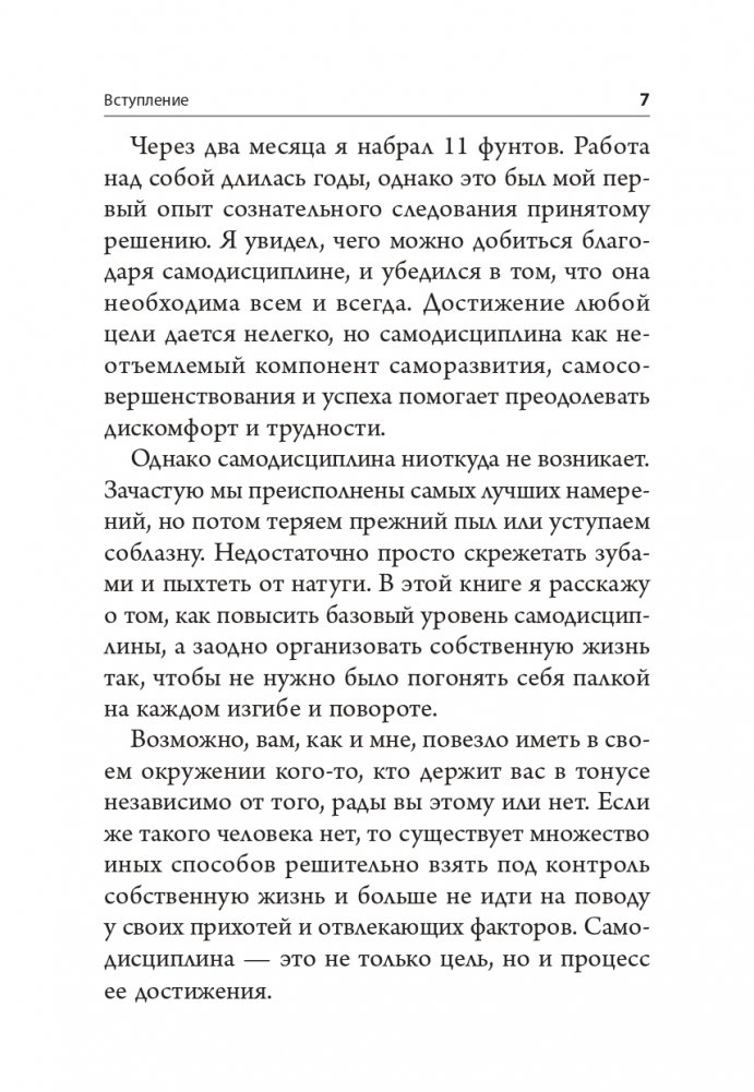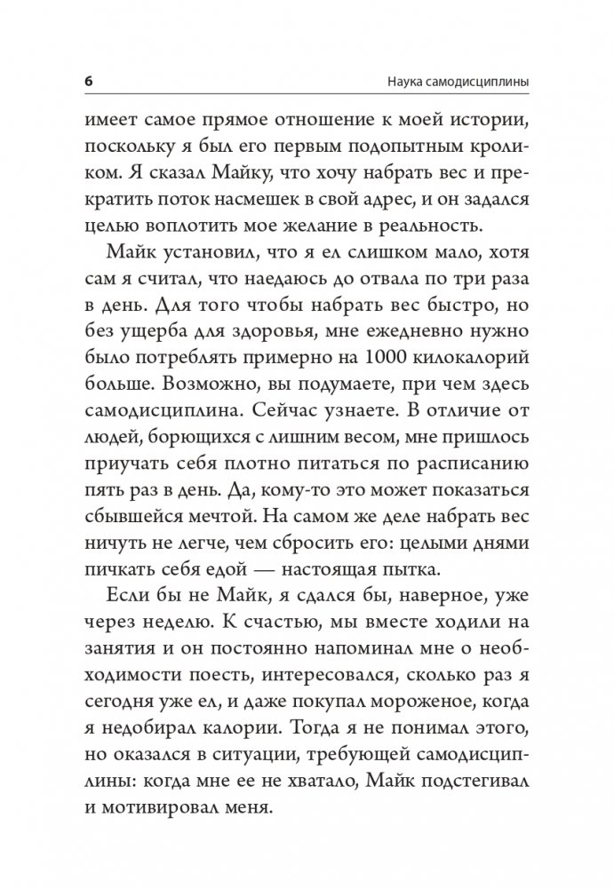«Наука самодисциплины» — это не просто книга. Это дорожная карта человеческой психики, которая кардинально изменит вашу жизнь. Когда вы поймете истинные причины своих импульсивных желаний и истоки силы воли, то сможете справиться с временным дискомфортом и сфокусироваться на том, что действительно важно. Питер Холлинс, практикующий психолог с большим опытом, просто и доходчиво объясняет, почему, поставив крест на сиюминутных отговорках, оправданиях, искушениях и лени, вы сможете рассчитывать на гораздо большие призы в будущем.