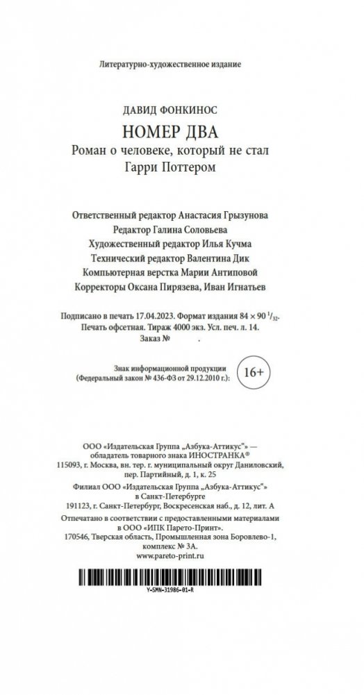 Номер Два. Роман о человеке, который не стал Гарри Поттером