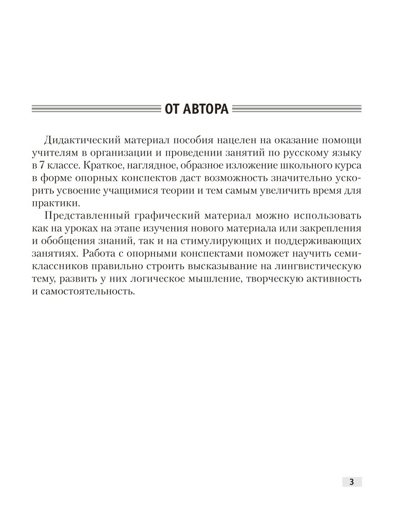 Издание составлено в соответствии с материалом учебного пособия по русскому языку для 7 класса. Основные правила представлены в виде схем и опорных конспектов.