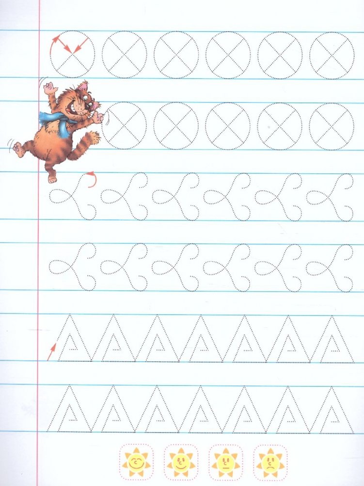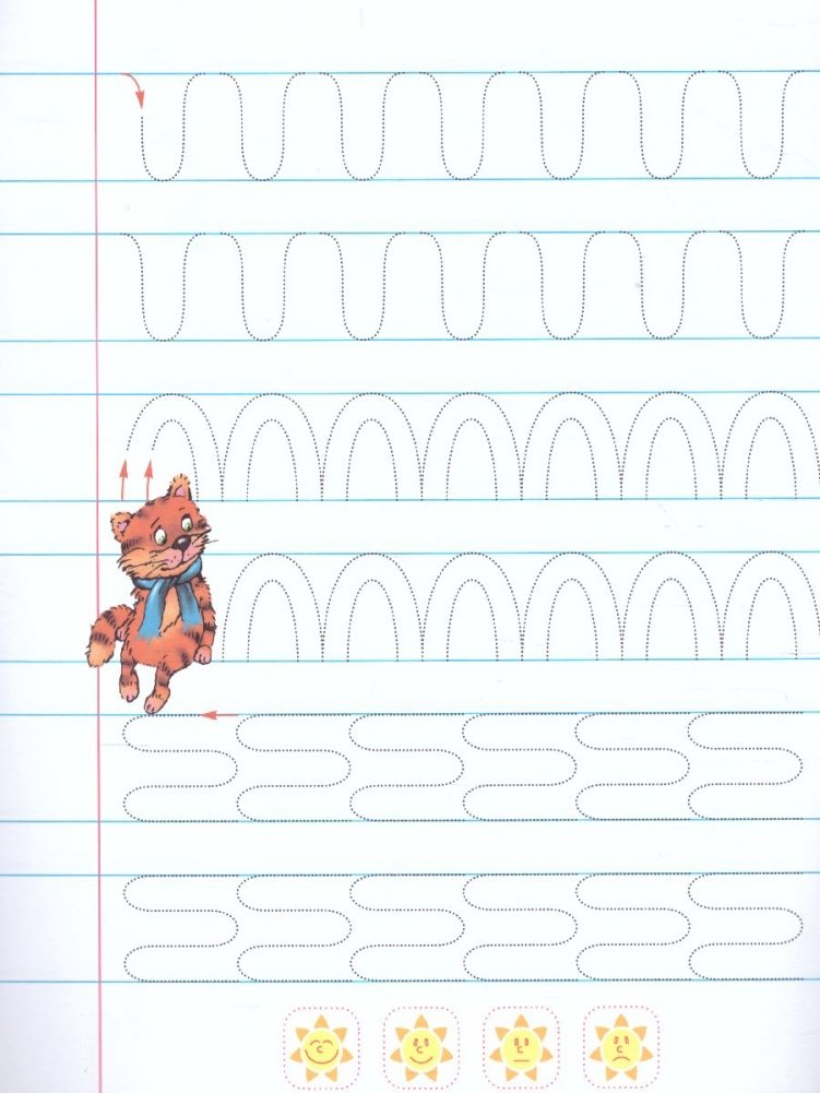 Обязательно оцените старания маленького ученика и похвалите его за усердие. Предложите ребёнку самостоятельно оценить выполненную им на странице работу — обвести солнышко с соответствующей оценкой.