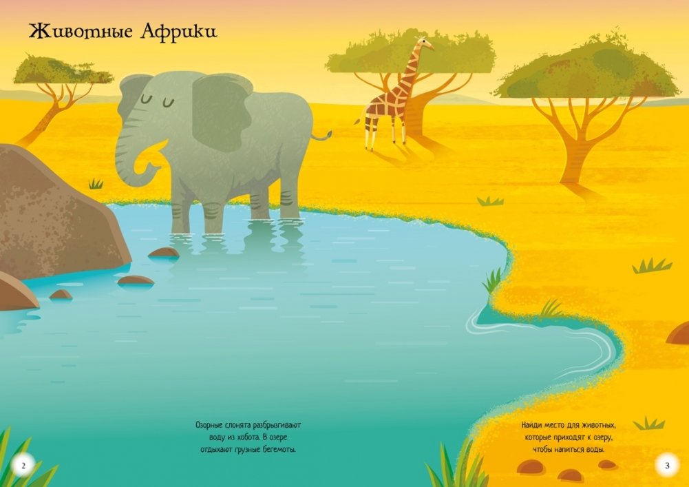 Посмотри, какие животные обитают в лесах, жаркой саванне, среди снега и льдов, в пустыне и океане. Все они очень разные! Одни прекрасно плавают и ныряют, другие лазают по деревьям, третьи – умело прячутся. Найди место для каждого животного.