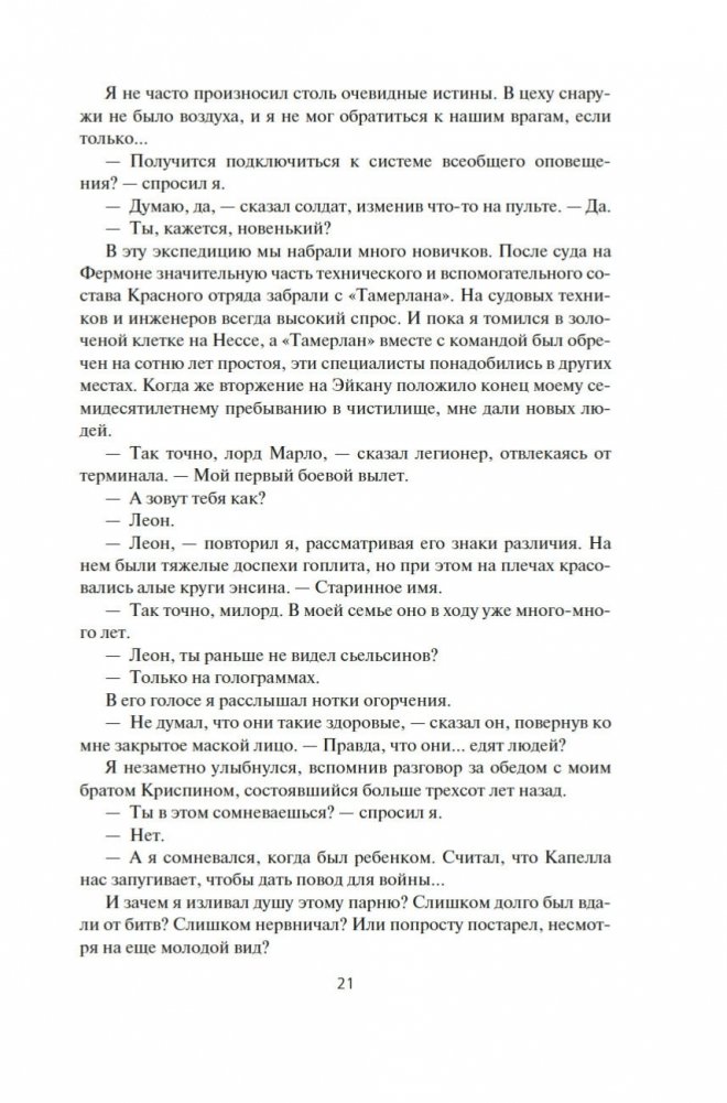 Жертва придворных интриг, Адриан Марло, прозванный Пожирателем Солнца, отправляется в ссылку на далекую планету. Но император не забывает о своем рыцаре и советнике. Объединенные кланы беспощадных сьельсинов под началом Сириани Дораяики наносят имперским легионам поражение за поражением, и кто, как не Адриан, может изменить ход войны? Марло получает тайное задание: отправиться на другой край Галактики, в загадочное Лотрианское Содружество, где верховной властью считается книга, и договориться с давними конкурентами Империи о военном сотрудничестве. Но тривиальная на первый взгляд миссия принимает непредвиденный оборот... Впервые на русском!