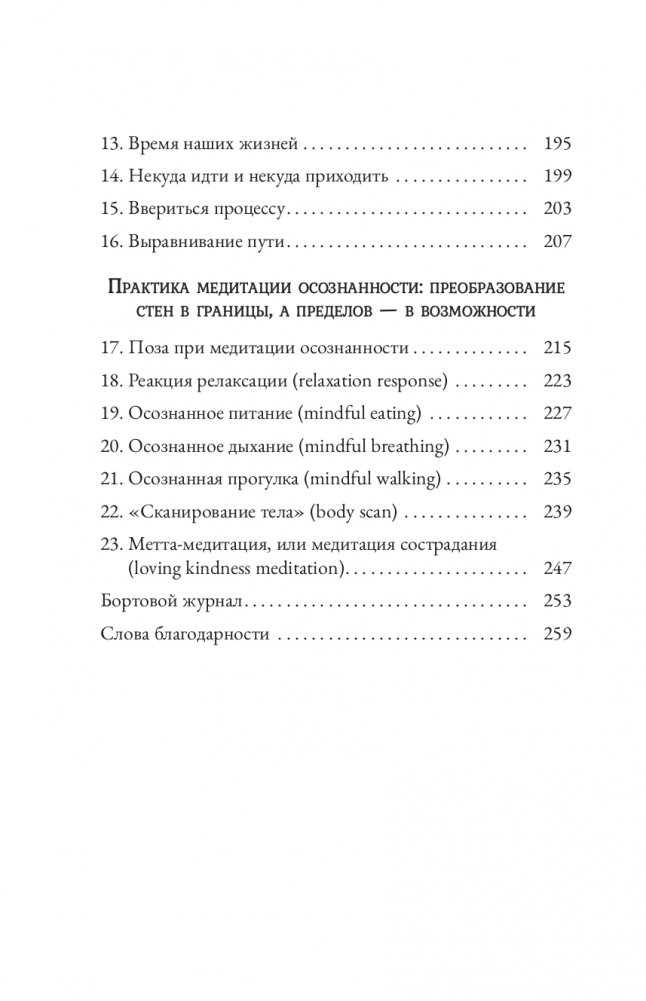 Благодаря солидной научной основе и практическим советам книга научит вас оставаться спокойными посреди всех жизненных бурь. Вы сможете полностью погружаться в текущий момент и воспринимать ту реальность, которая обычно от нас ускользает. Медитация осознанности позволяет понять, насколько умственные проекции изменяют наше восприятие происходящего.