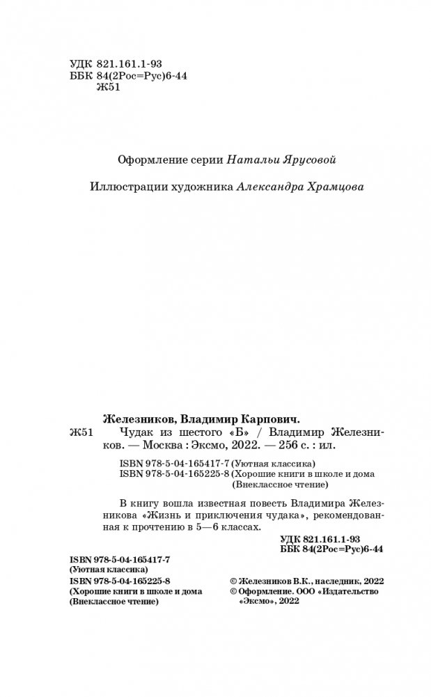 В книгу вошла известная повесть Владимира Железникова «Жизнь и приключения чудака», рекомендованная к прочтению в 5—6 классах.