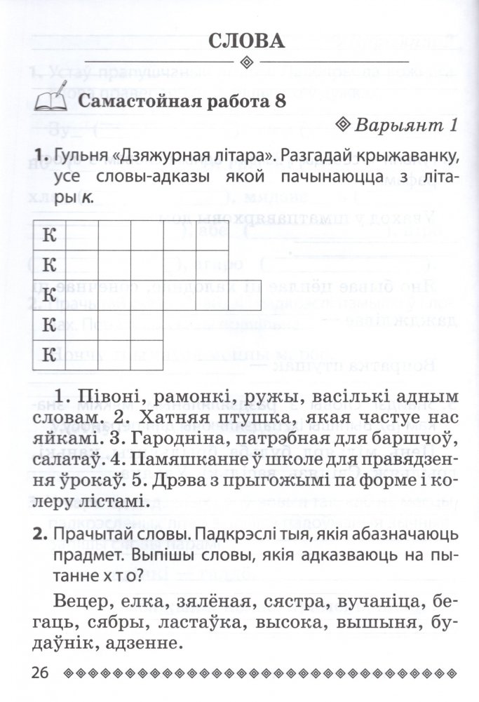Дапаможнік падрыхтаваны ў адпаведнасцi з вучэбнай праграмай па беларускай мове для 2-га класа. Ён змяшчае ў сабе комплекс практычных заданняў, якiя дапамогуць разнастаiць работу на ўроку беларускай мовы, захоўваючы прынцып здароўезберагальнай функцыi адукацыйнага працэсу i прынцып кампетэнтнасцi паводле зместу i формы выканання. Дадзены дапаможнік можна выкарыстоўваць на ўроку, каб праверыць веды i ўменнi вучняў па адпаведных тэмах, а таксама для арганiзацыi стымулюючых заняткаў цi iншых вiдаў пазаўрочнай работы па беларускай мове.