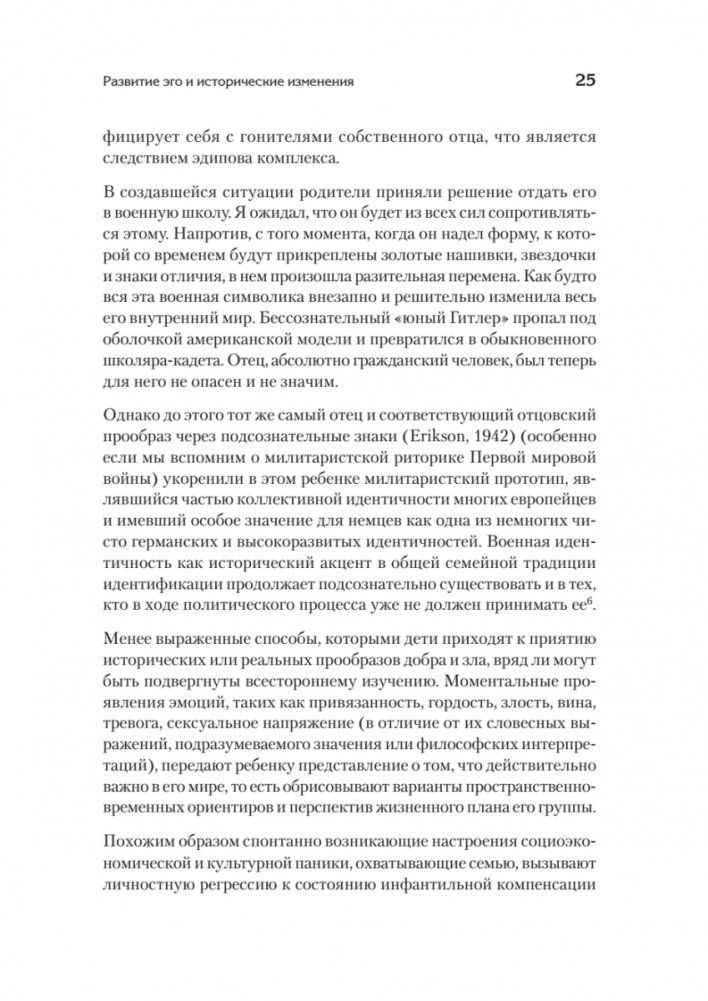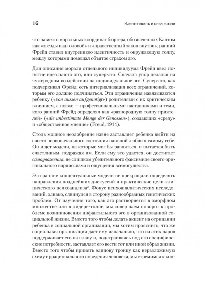 Эрик Эриксон — известный американский социолог и один из самых цитируемых психологов XX века. Его концепция стадий человеческого развития оказала значительное влияние на современную психологию. Книгу «Идентичность и цикл жизни», в которую включены три ранние работы мастера, наряду с книгой «Детство и общество» многие специалисты считают лучшим введением в теорию Эриксона. Первая работа «Развитие эго и исторические изменения» представляет собой квинтэссенцию терапевтических и полевых наблюдений, которые в дальнейшем легли в основу книги «Детство и общество». Вторая работа «Рост и кризисы здоровой личности» выходит за пределы подросткового возраста и описывает все восемь стадий развития личности. В третьей работе «Проблема эго-идентичности» Эриксон последовательно рассматривает кризис идентичности с биографической, клинической и социальной точек зрения.