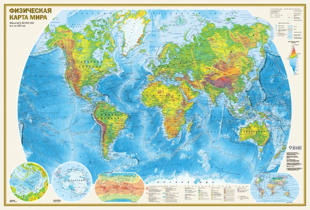Физическая карта мира А0 (в новых границах)