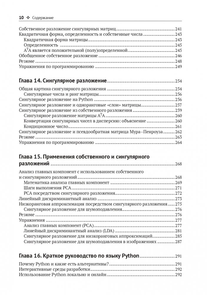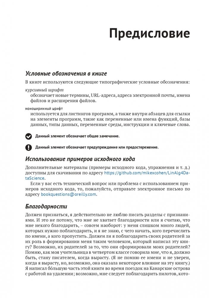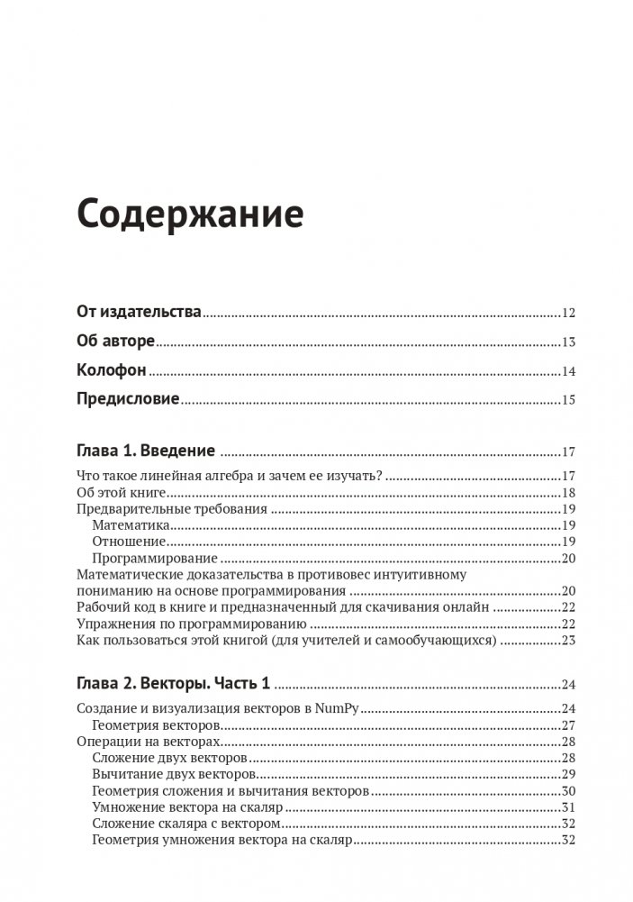 В книге рассказывается о ключевых концепциях линейной алгебры, реализованных на Python, и о том, как их использовать в науке о данных, машинном и глубоком обучении и вычислительном моделировании. Вооружившись этими знаниями, вы сможете понять, как внедрять и адаптировать под свои задачи целый ряд современных методов анализа и алгоритмов.