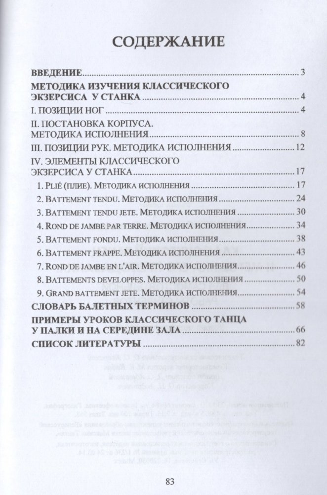 В пособии представлена методика изучения классического экзерсиса у станка. Дается подробное описание правильной постановки корпуса, позиций рук и ног. Каждое упражнение у станка рассматривается с детальными методическими рекомендациями. Включает в себя методику изучения, упражнения и задания, что позволит студентам факультета эстетического образования БГПУ, обучающимся по специальности «Музыкальное искусство, ритмика и хореография», а также других педагогических вузов со специализацией «Ритмика. Хореография», самостоятельно работать над совершенствованием исполнительского мастерства.