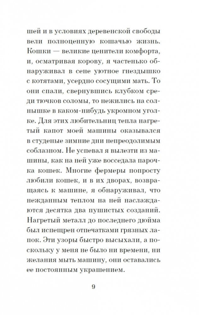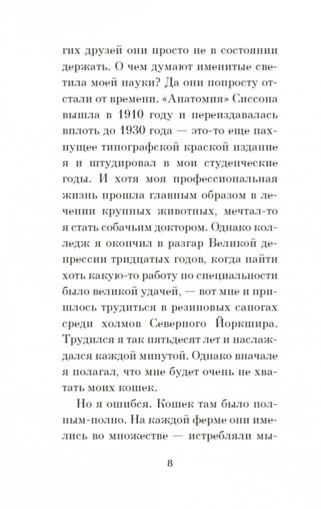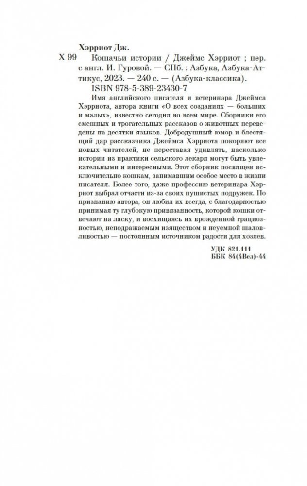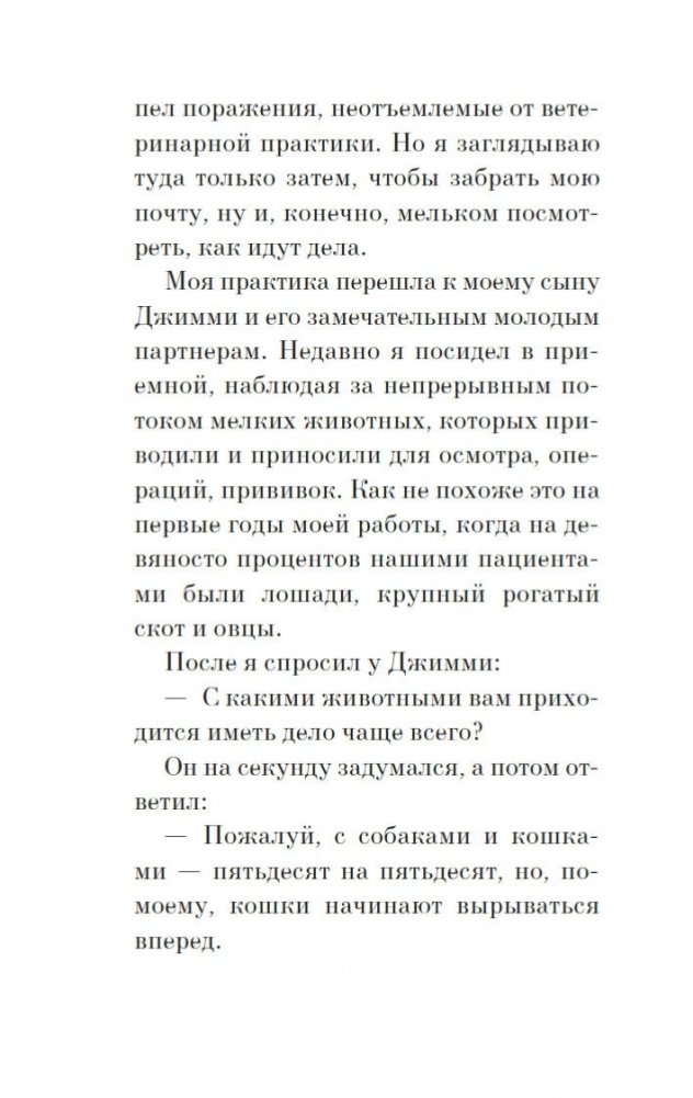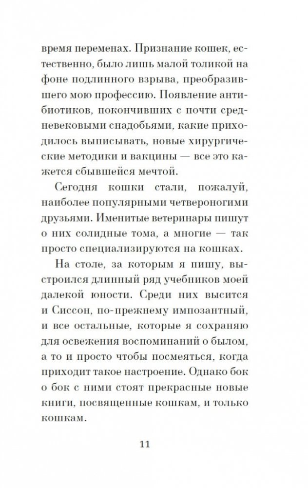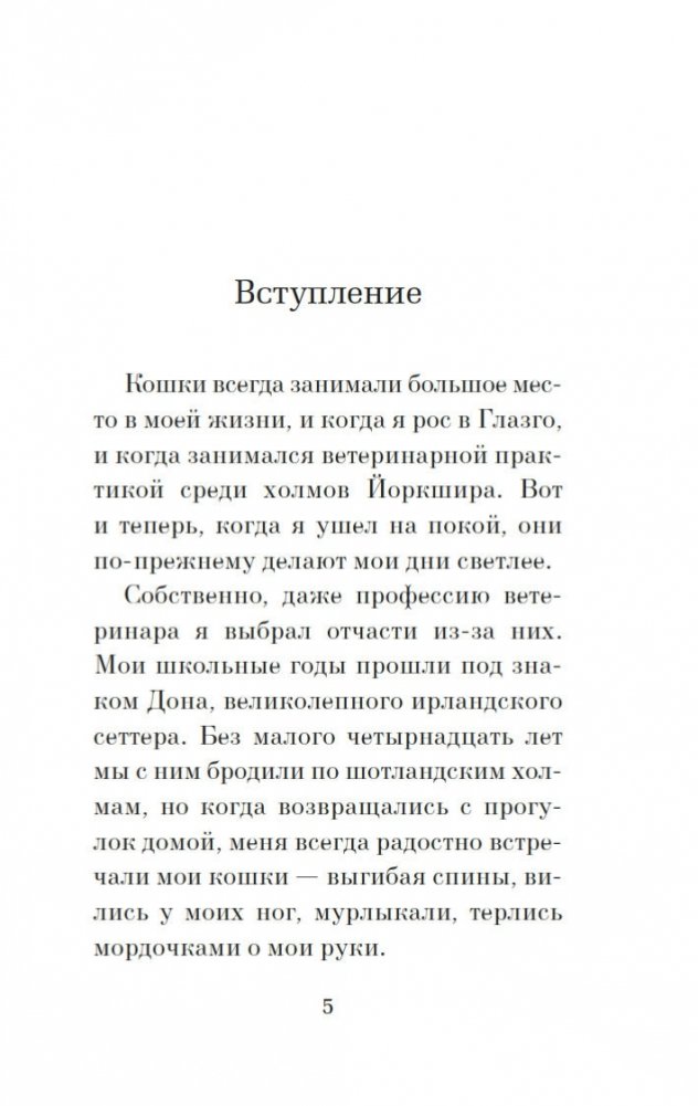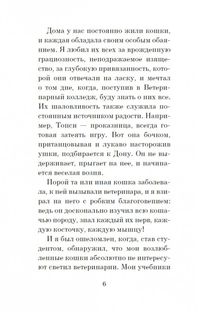 Имя английского писателя и ветеринара Джеймса Хэрриота, автора книги «О всех созданиях — больших и малых», известно сегодня во всем мире. Сборники его смешных и трогательных рассказов о животных переведены на десятки языков. Добродушный юмор и блестящий дар рассказчика Джеймса Хэрриота покоряют все новых читателей, не переставая удивлять, насколько истории из практики сельского лекаря могут быть увлекательными и интересными. Этот сборник посвящен исключительно кошкам, занимавшим особое место в жизни писателя. Более того, даже профессию ветеринара Хэрриот выбрал отчасти из-за своих пушистых подружек. По признанию автора, он любил их всегда, с благодарностью принимая ту глубокую привязанность, которой кошки отвечают на ласку, и восхищаясь их врожденной грациозностью, неподражаемым изяществом и неуемной шаловливостью — постоянным источником радости для хозяев.