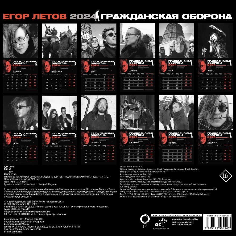 Егор Летов. Гражданская Оборона. Календарь на 2024 год