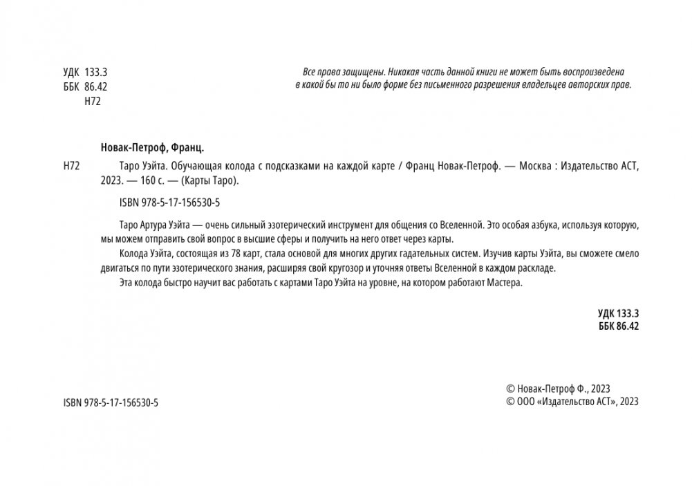 Классическая колода Таро — Таро Уэйта — самый важный инструмент для каждого таролога. Если вы только начинаете знакомство с Таро, эти карты станут для вас незаменимым помощником. На каждом из 78 изображений расшифрованы и подписаны все символы, текст нанесен прямо на картинку. Это уникальная методика, которая зарекомендовала себя как необычайно эффективная для обучения работе с картами.