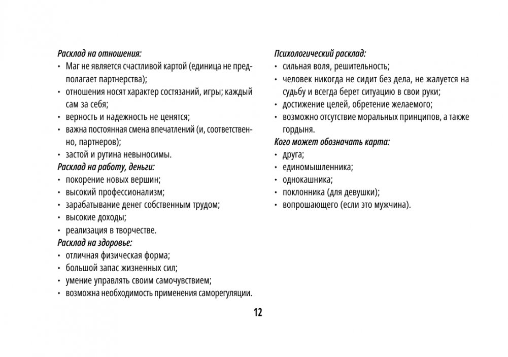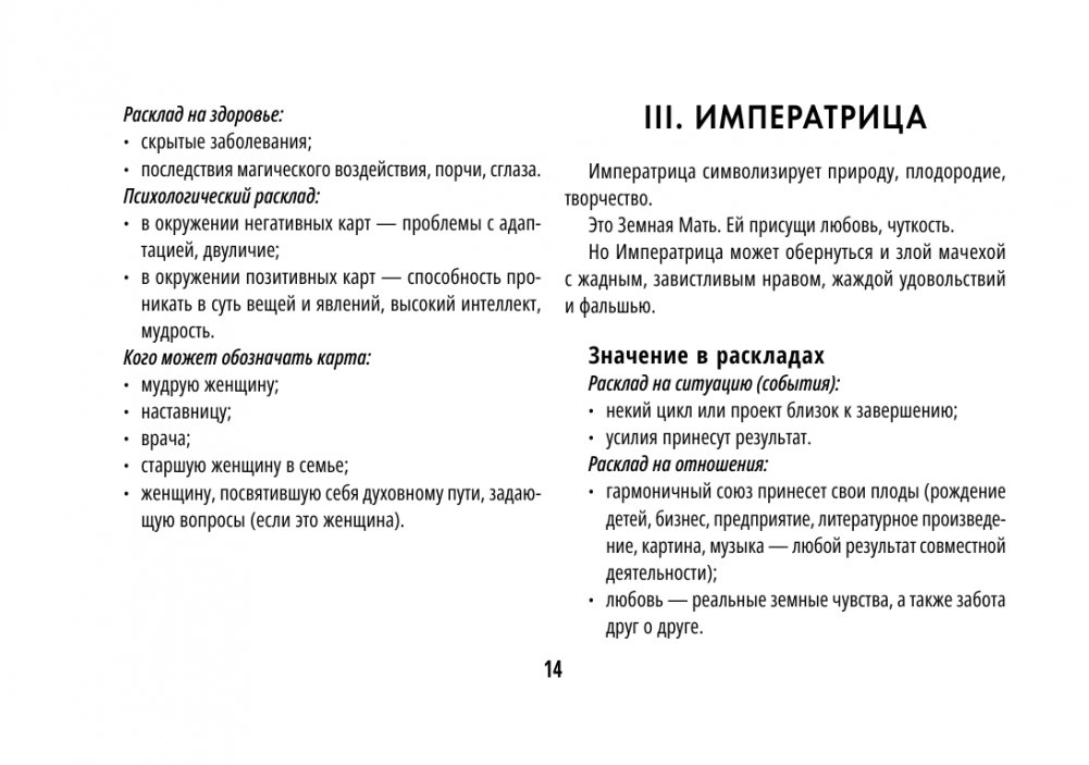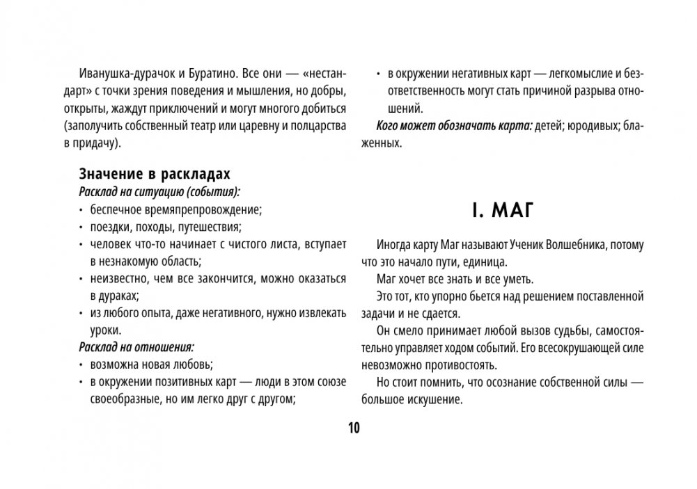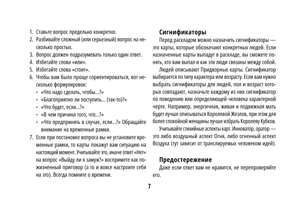 • инструкция по работе с картами, дополнительными значениями и 30 раскладами;