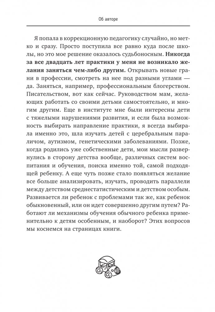 Ольга Мордашова, дефектолог, нейрологопед и специалист по раннему развитию, изучив опыт тысяч детей с нарушениями, дефектами речи и аутизмом, дает мамам и папам четкое объяснение: как происходит развитие ребенка, какие стадии проходит его мозг, каковы возможности мозга и тела малыша в каждый этап дошкольного периода. Книга стремится предупредить вас об опасностях, а еще указать на самые ранние маркеры возможных нарушений, предлагает посмотреть на будничные действия малыша с точки зрения его развития. Автор рассказывает о сложных вопросах легко и понятно, описывает знакомые каждой маме ситуации и делится не только профессиональными знаниями, но и своим четырежды материнским опытом.