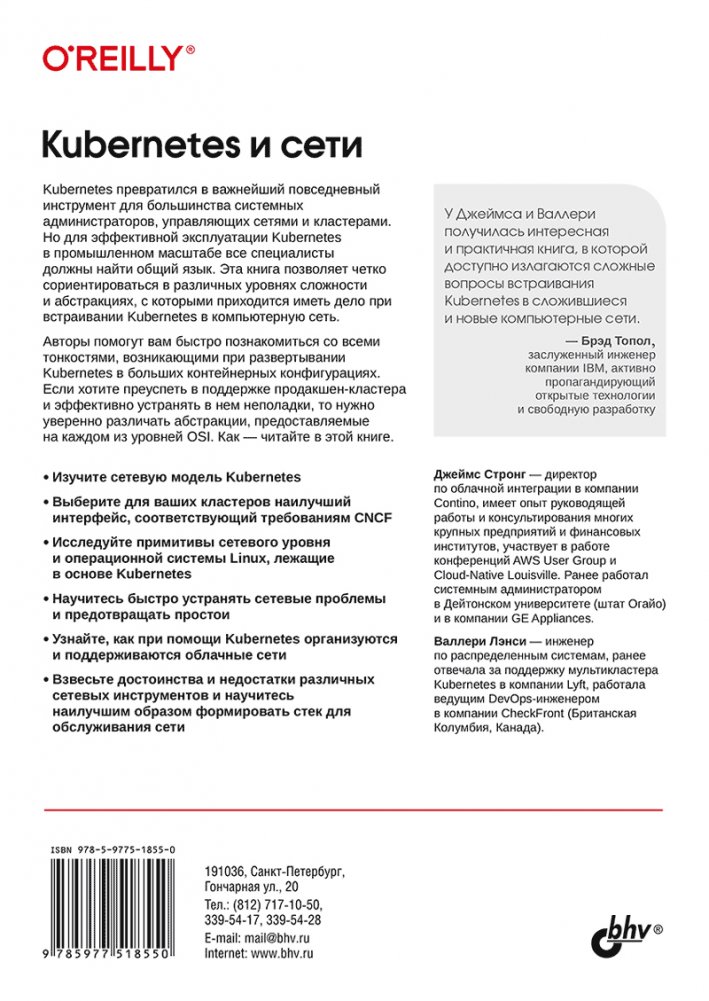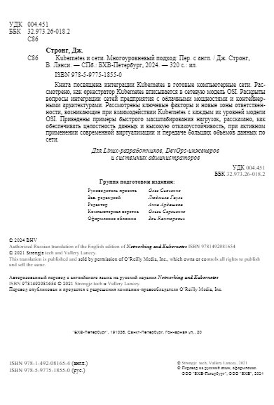 Книга посвящена интеграции Kubernetes в готовые компьютерные сети. Рассмотрено, как оркестратор Kubernetes вписывается в сетевую модель OSI. Раскрыты вопросы интеграции сетей предприятия с облачными мощностями и контейнерными архитектурами. Рассмотрены ключевые факторы и новые зоны ответственности, возникающие при взаимодействии Kubernetes с каждым из уровней модели OSI. Приведены примеры быстрого масштабирования нагрузок, рассказано, как обеспечивать целостность данных и высокую отказоустойчивость, при активном применении современной виртуализации и при передаче больших объёмов данных по сети.