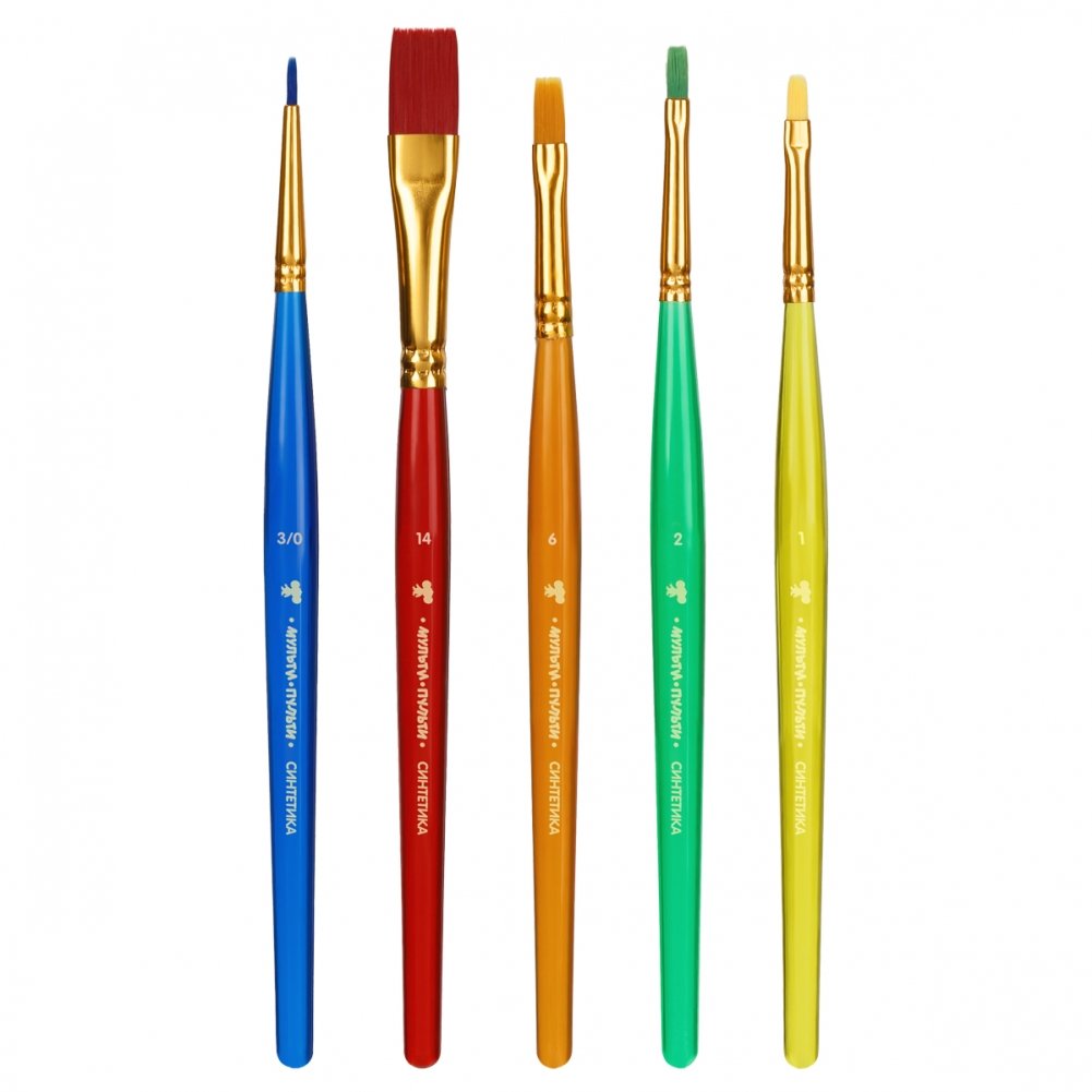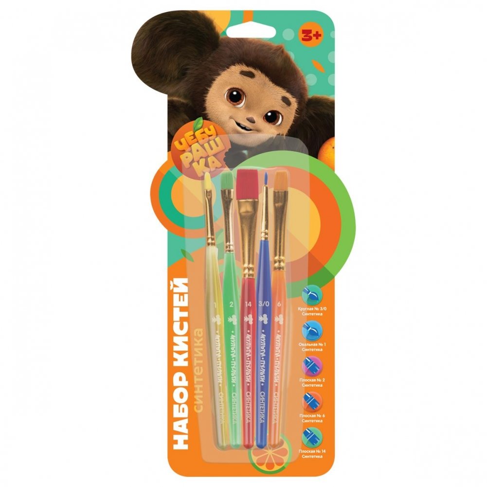 Набор кистей Мульти-Пульти "Чебурашка", 5 шт., синтетика, круглая № 3, плоские № 2, 6, 14, овальная № 1, блистер. Арт. НКЧБ_53002