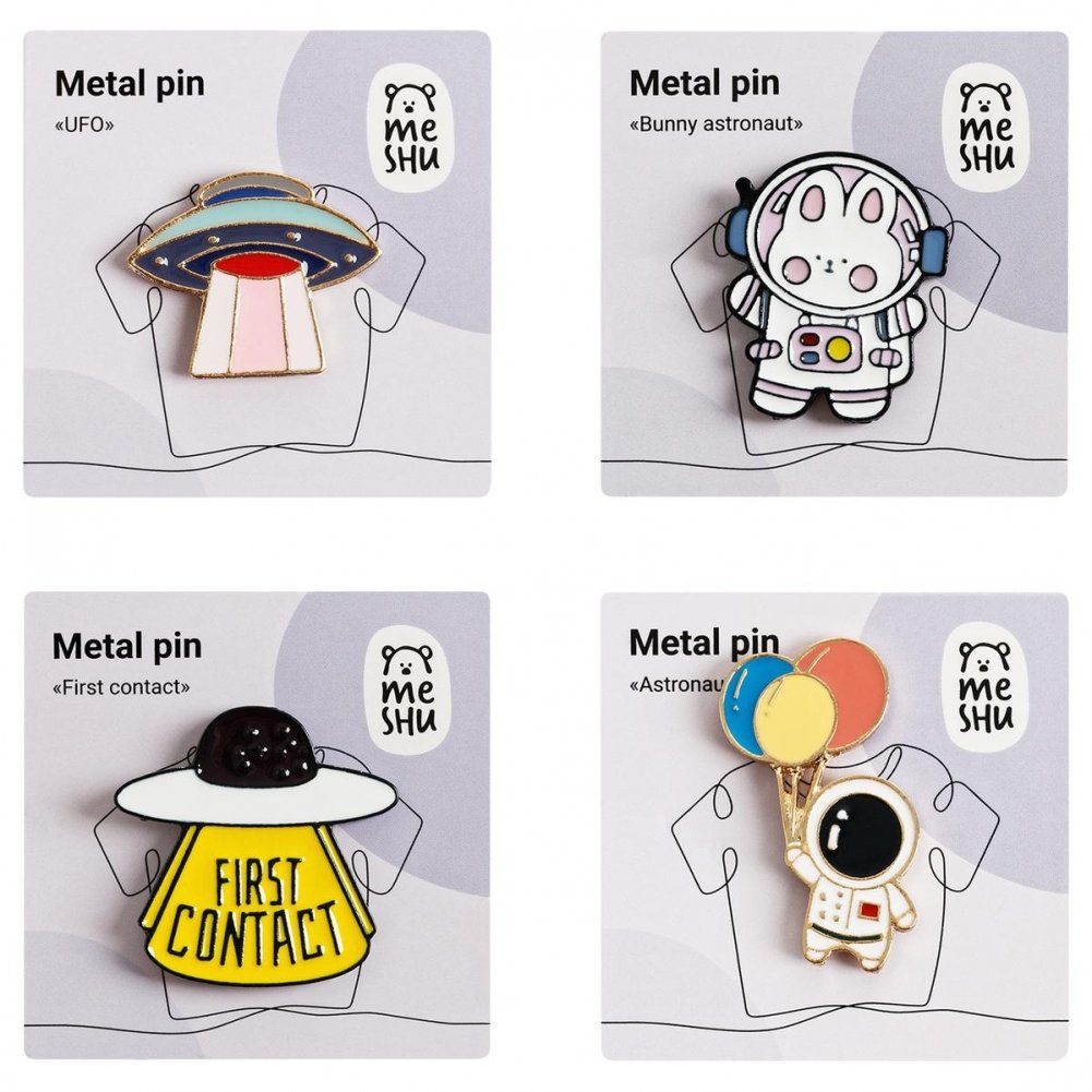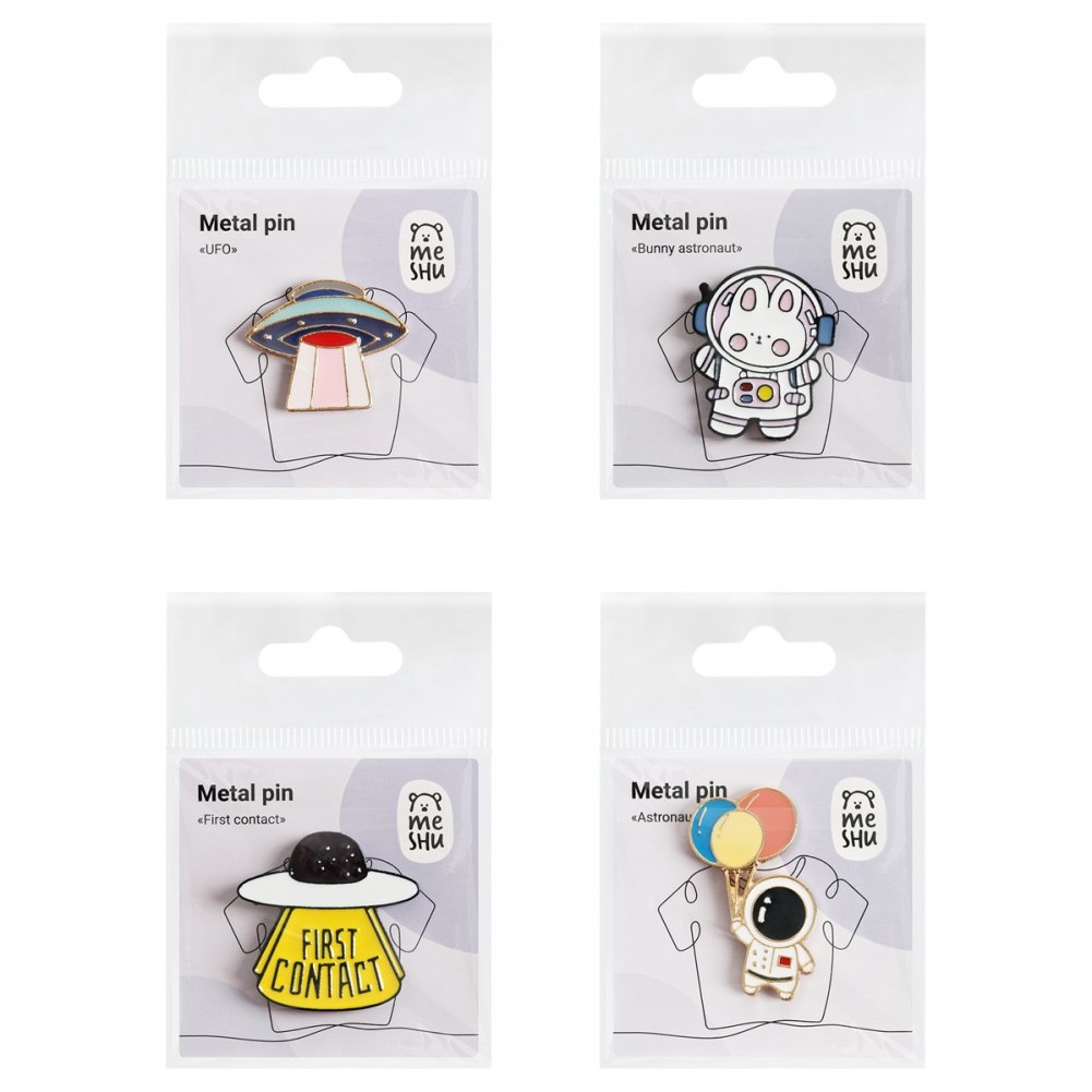 Набор металлических значков MESHU First contact – оригинальный и модный аксессуар, который преобразит любую вещь. В наборе 4 значка. Застежка-бабочка позволяет значку надёжно держаться. Эти забавные значки созданы специально, чтобы поднимать настроение своему обладателю!