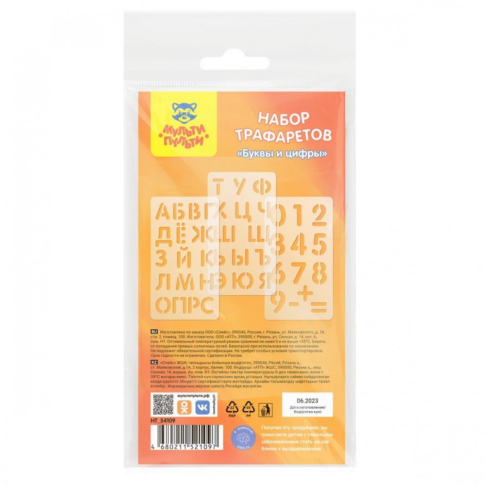 Набор трафаретов Мульти-Пульти 10х18 см, "Буквы и цифры", 3 шт., европодвес. Арт. НТ_54109