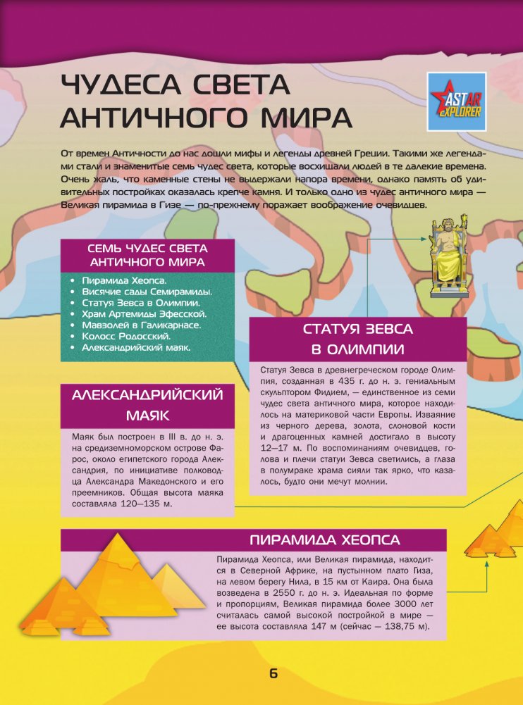 Этот большой великолепно иллюстрированный 4D-атлас приоткроет перед юными читателями тайны необыкновенных сооружений древних цивилизаций и архитектурных шедевров современности, которыеобъединены общим названием "чудеса света". В древности их было семь, однако с течением времени таких удивительных творений, созданных природой и человеческим гением, насчитывается ужегораздо больше. К признанным чудесам света добавились даже некоторые обитатели растительного иживотного мира, обладающие необычным внешним видом или какими-то невероятными способностями. Обо всех этих замечательных объектах вы сможете узнать, листая уникальную книгу нового поколения, в которой важные сведения и любопытные факты приведены в сопровождении огромного количества зрелищных иллюстраций. А новейшие 4D-технологии совершенно изменят восприятие прочитанного, позволяя обозревать чудеса света в интерактивном режиме. Чтобы знаменитые памятники природы, истории и культуры "ожили" и "заговорили", необходимо будет лишь скачать бесплатное приложение ASTAR EXPLORER на мобильное устройство, настроить его и действовать согласно инструкции. Дополненная реальность, звуковые эффекты и нестандартно изложенная познавательная информация откроют перед читателями удивительные возможности для знакомства с чудесами света в самом современном формате!