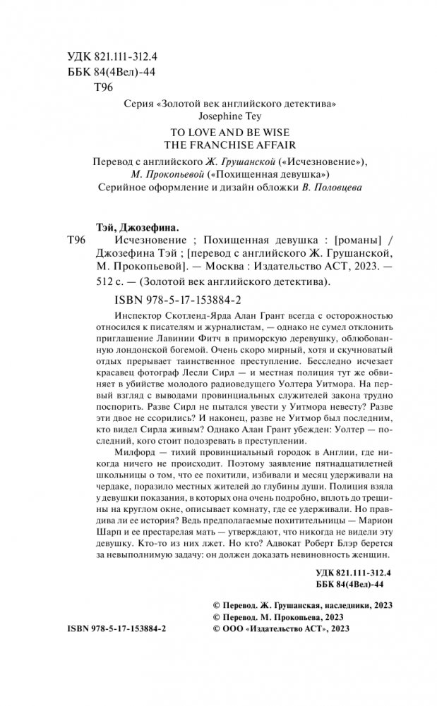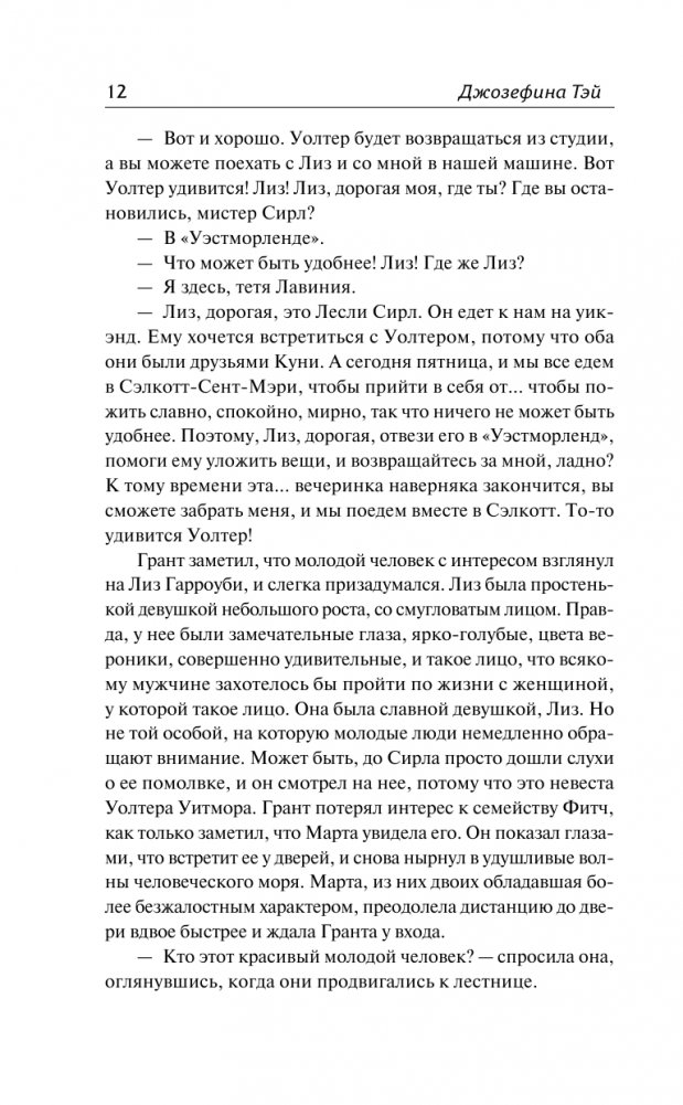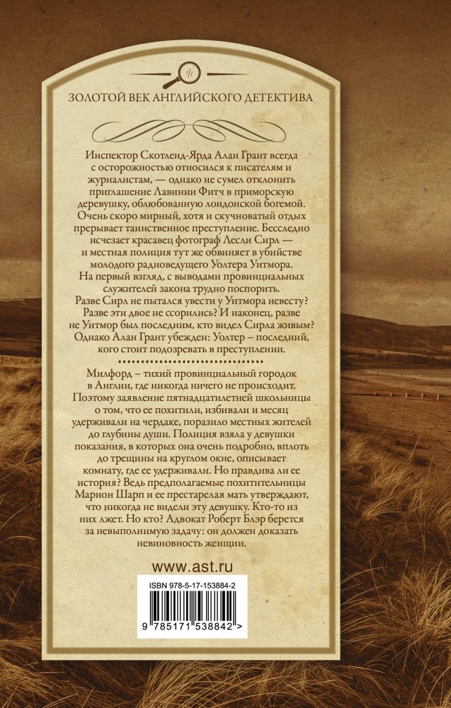 Инспектор Скотленд-Ярда Алан Грант всегда с осторожностью относился к писателям и журналистам, — однако не сумел отклонить приглашение Лавинии Фитч в приморскую деревушку, облюбованную лондонской богемой. Очень скоро мирный, хотя и скучноватый отдых прерывает таинственное преступление. Бесследно исчезает красавец фотограф Лесли Сирл — и местная полиция тут же обвиняет в убийстве молодого радиоведущего Уолтера Уитмора. На первый взгляд, с выводами провинциальных служителей закона трудно поспорить. Разве Сирл не пытался увести у Уитмора невесту? Разве эти двое не ссорились? И наконец, разве не Уитмор был последним, кто видел Сирла живым? Однако Алан Грант убежден: Уолтер – последний, кого стоит подозревать в преступлении.