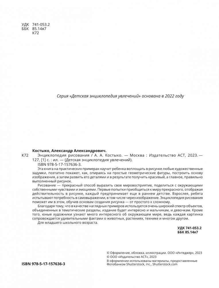 Рисование — прекрасный способ выразить свое мировосприятие, поделиться с окружающими собственными чувствами и эмоциями. Первые попытки приобщиться к миру прекрасного, отображая действительность в рисунке, каждый предпринимает еще в раннем детстве. Взрослея, ребята испытывают потребность в самовыражении, в том числе через изображение. Энциклопедия рисования поможет им в этом, обучив основам создания рисунка — от простого к сложному.