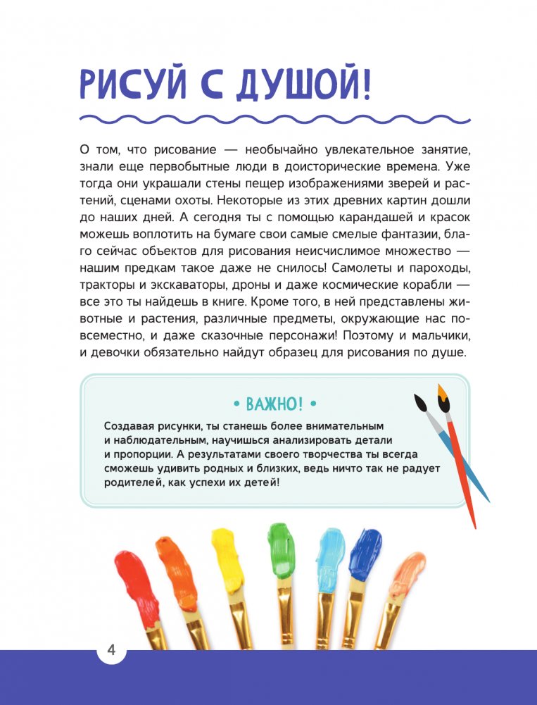 Благодаря тому, что в качестве наглядных примеров используется очень широкий спектр объектов, объединенных в тематические разделы, издание будет интересно и мальчикам, и девочкам. Кроме того, юные художники узнают много интересного об окружающем мире, ведь каждая картинка сопровождается удивительными фактами о животных, растениях, технике и многом другом.