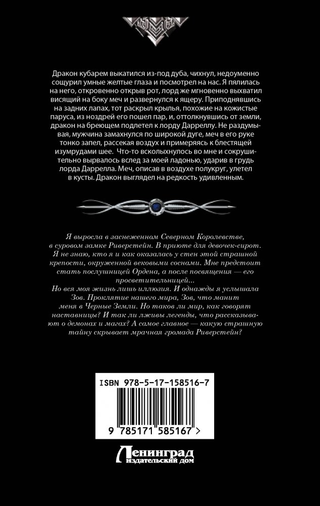 Но вся моя жизнь лишь иллюзия. И однажды я услышала Зов. Проклятие нашего мира, Зов, что манит меня в Черные Земли. Но таков ли мир, как говорят наставницы? И так ли лживы легенды, что рассказывают о демонах и магах? А самое главное — какую страшную тайну скрывает мрачная громада Риверстейн?