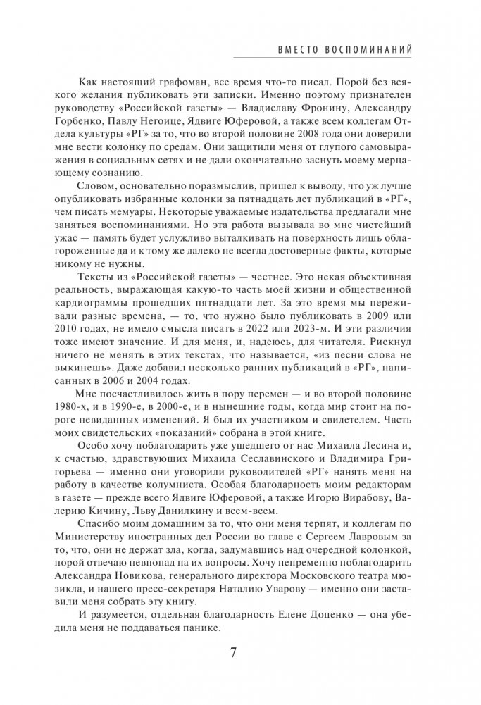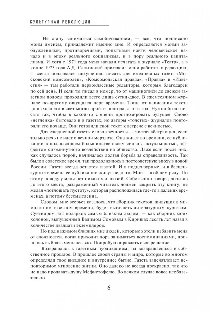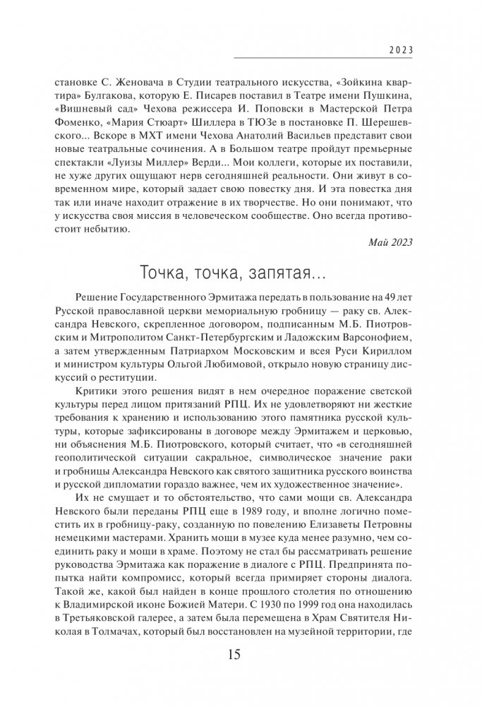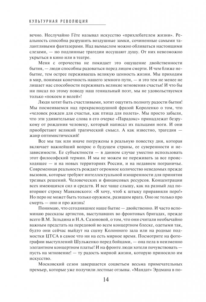 Театральные сезоны в Москве и Петербурге, юбилеи «Эрмитажа» и «Мосфильма», знаковые выставки в ГМИИ им. А.С. Пушкина, Историческом музее, год Германии в России, вручение премии «ТЭФИ», Фестиваль российской культуры в Японии и многое другое найдет читатель в настоящей книге. Автор приглашает нас на разговор о недавнем прошлом и настоящем — интригующий, страстный и подлинный.