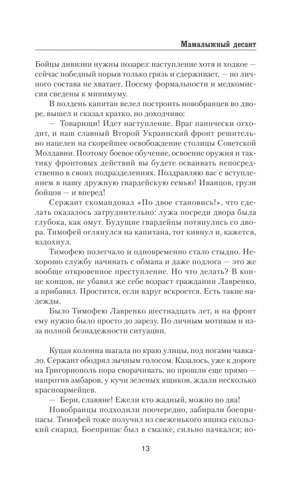 Апрель 1944-го. Тимофею Лавренко, призывнику полевого военкомата, через несколько дней предстоит вступить в бой. Как сложится его судьба, куда выведут мальчишку фронтовые дороги, можно лишь угадывать и предчувствовать. Но в судьбу и суеверия Тимка не верит, он верит только в Победу.
