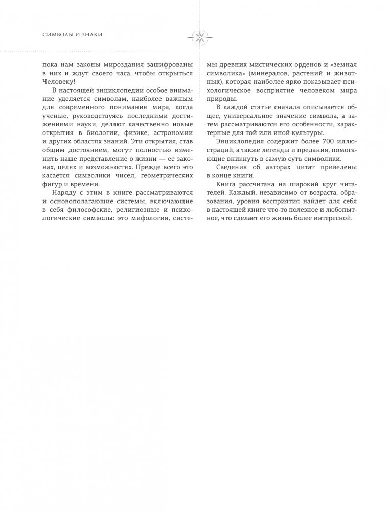 В прежние времена символика была тайным знанием, которое тщательно охранял узкий круг Посвященных. Теперь доступ к символам открыт всем, и число желающих изучать их и работать с ними постоянно растет. Энциклопедия содержит более 700 иллюстраций, а также легенды и предания, помогающие вникнуть в самую суть символики.