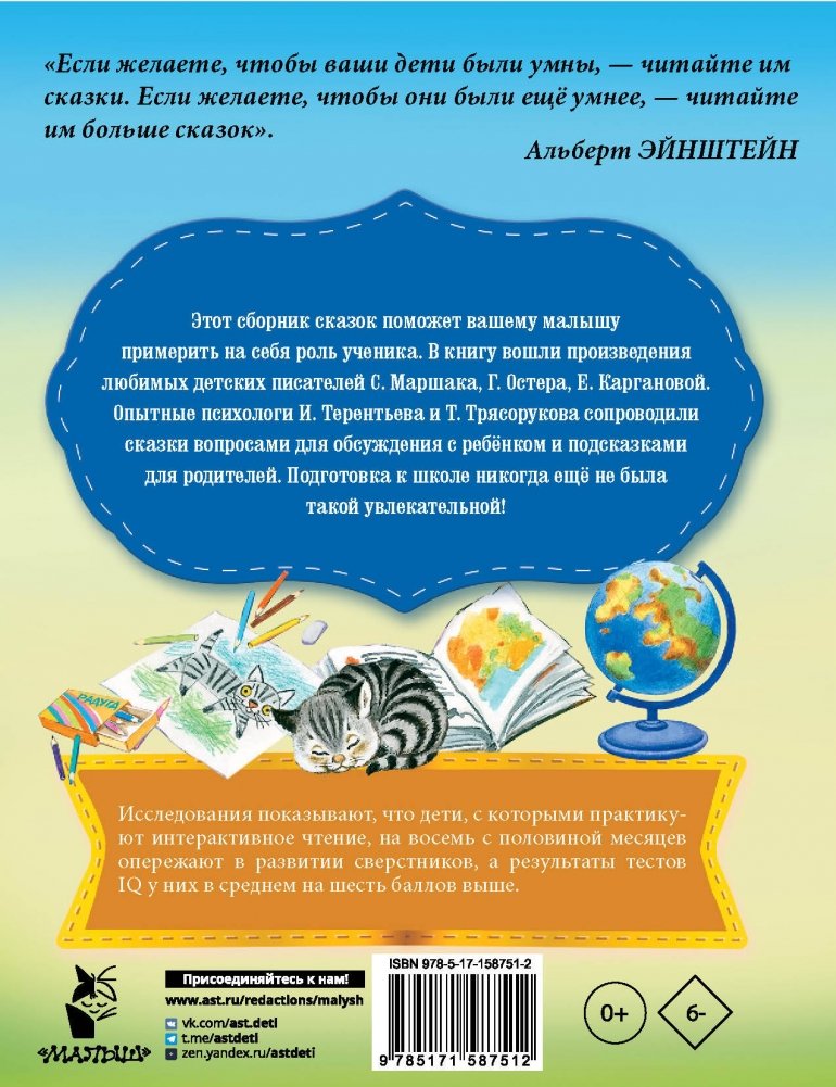 Ваш малыш вырос! Как определить эмоциональную готовность ребёнка к школе? Как подготовить его к новому периоду в жизни? Опытный педагог и психолог Татьяна Трясорукова и сказкотерапевт Ирина Терентьева помогут вам оценить уровень готовности малыша к поступлению в школу. В книге собраны произведения знаменитых детских авторов С. Маршака, Г. Остера и Е. Каргановой, герои которых учатся новому, находят друзей и познают окружающий мир. Увлекательные истории и вопросы после сказок помогут выстроить доверительную беседу с ребёнком и повысить его познавательный интерес.