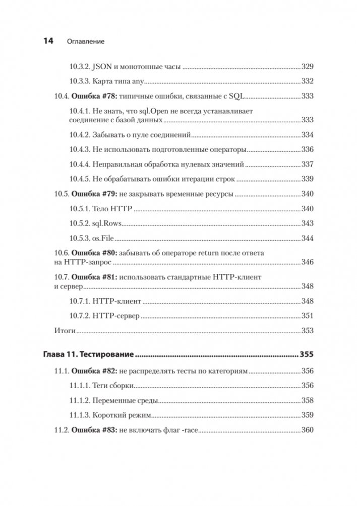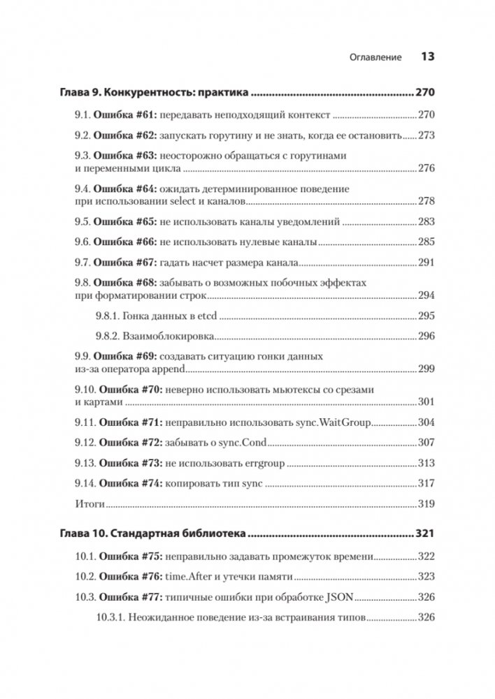 Вы научитесь писать идиоматичный и выразительный код на Go, разберете десятки интересных примеров и сценариев и поймете, как обнаружить ошибки и потенциальные ошибки в своих приложениях. Чтобы вам было удобнее работать с книгой, автор разделил методы предотвращения ошибок на несколько категорий, начиная от типов данных и работы со строками и заканчивая конкурентным программированием и тестированием.