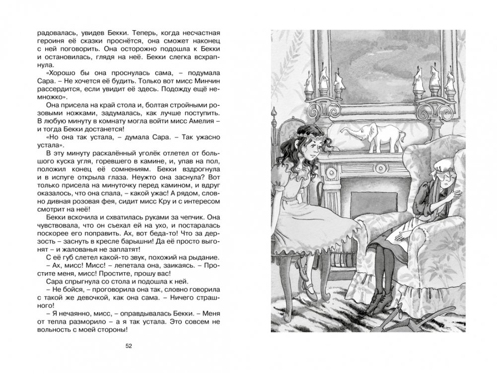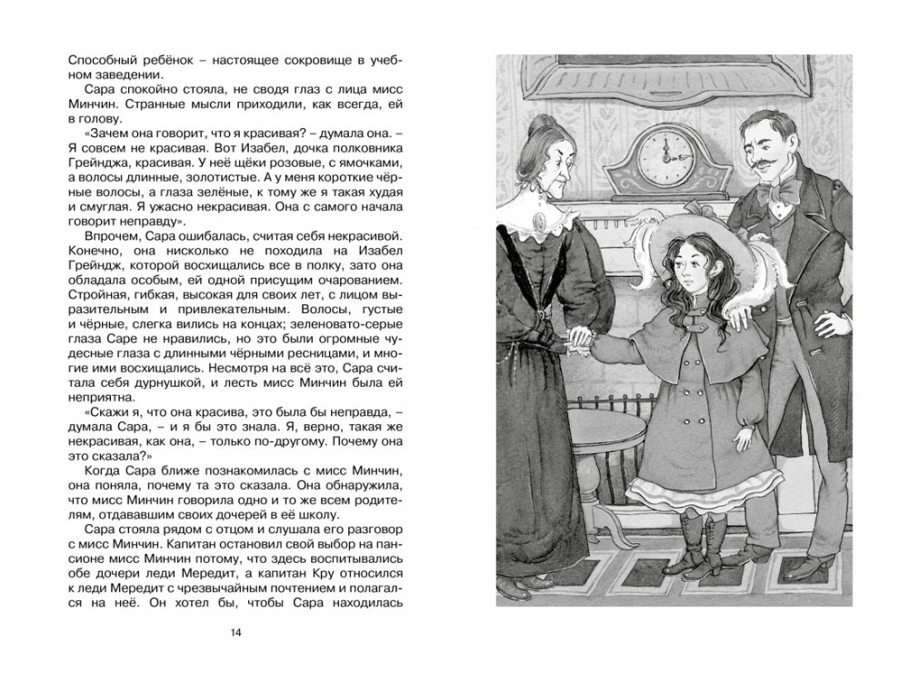 В 1905 году детская писательница Фрэнсис Бёрнетт (1849–1924) написала удивительную историю о необычной девочке Саре Кру. Сара родилась в Индии, стране невиданных богатств и волшебства. Она жила, как настоящая принцесса, в роскоши, окруженная заботой и любовью. И, как полагается принцессе, даже в самые тёмные времена Сара сохранила доброе сердце и веру в чудеса, которые помогали ей отважно переносить все невзгоды. Чистая, светлая душа девочки, умение любить и сострадать сотворили настоящее волшебство и изменили жизнь Сары к лучшему.