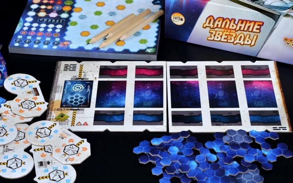 "Дальние звёзды" – это увлекательное путешествие, по итогам которого каждый игрок составит свою карту космоса! Во время исследования вы встретитесь с инопланетными расами, откроете новые скопления ярких звёзд, отыщите сокровища неисследованных ранее планет и постараетесь избежать опасные чёрные дыры. Рисуйте уникальный маршрут на свой карте космоса, используя направления с жетонов зон разведки. Но какой путь будете рисовать вы, а какой остальные игроки, зависит от выбранного вами модуля. Действуйте с умом, и ваша карта обязательно приведёт человечество к новым высотам!