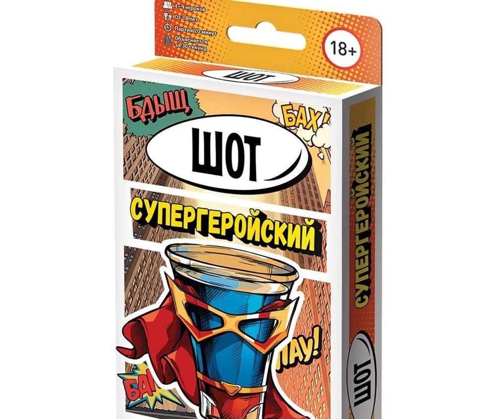Играть в "Шот Горячительный" отнюдь не сложно, но необычайно весело! Игроки по очереди совершают ходы, вытягивая карты: на каждой описаны определённые супергеройские задания. Придётся снимать видео, танцевать и совершать всевозможные смешные действия – но делать это не обязательно. Если вы не хотите выполнять задание, вы можете выпить и передать карту игроку слева. Он, в свою очередь, тоже должен решить, выполнить задание или передать карту дальше. Карта будет переходить по кругу до тех пор, пока кто-то не выполнит её условие или пока она не вернётся к вам.